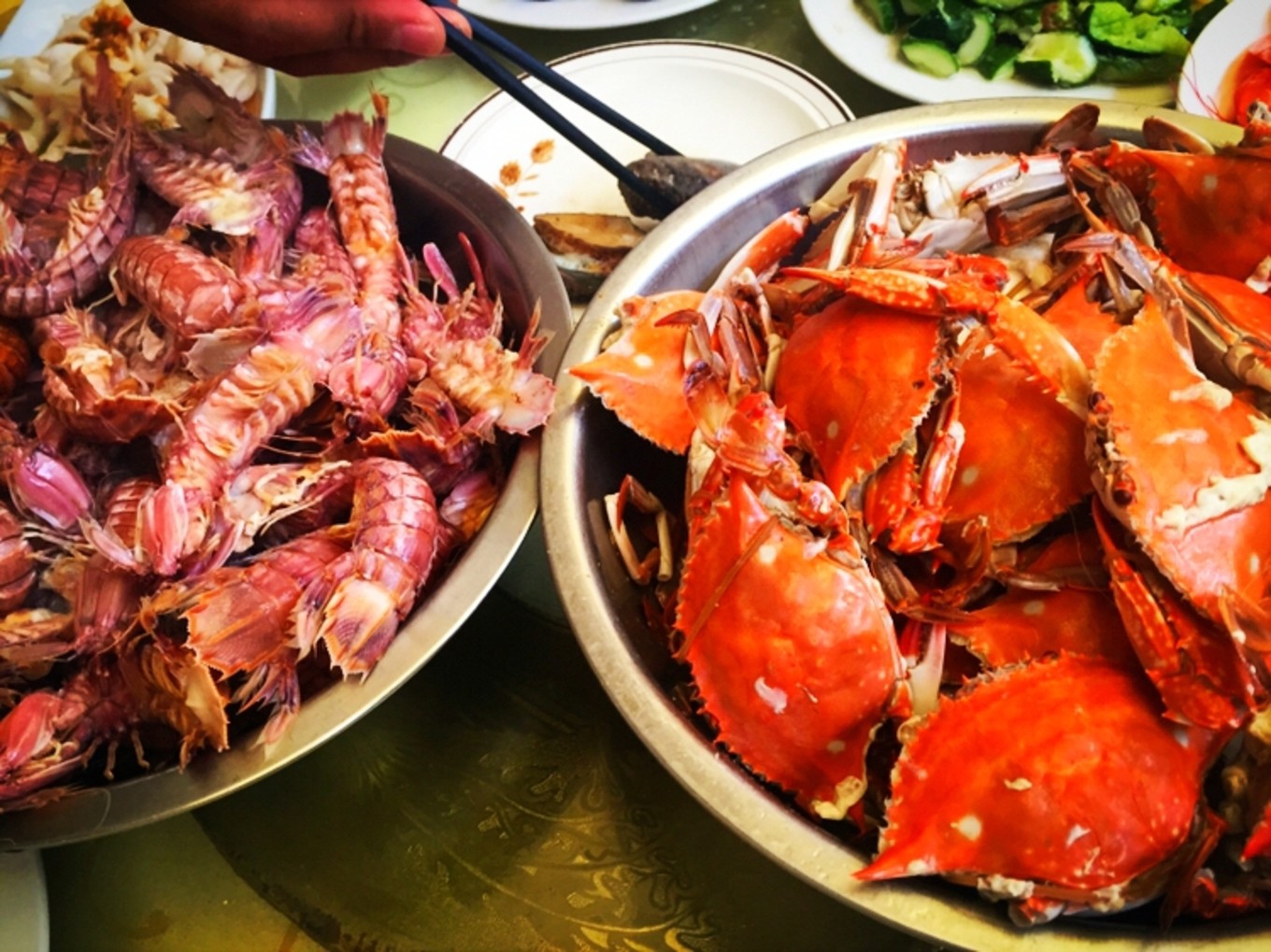遇到的這幾個(gè)大哥(也包含叔叔,后來說有女兒跟我一樣大的,逼著我多吃了好幾個(gè)螃蟹)比較會(huì)玩,讓小帥哥直接開到當(dāng)?shù)睾ur市場(chǎng),買了好多新鮮食材,拿回去讓老板加工