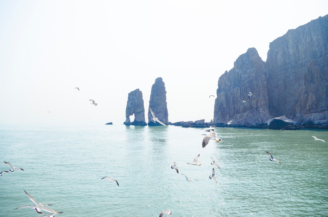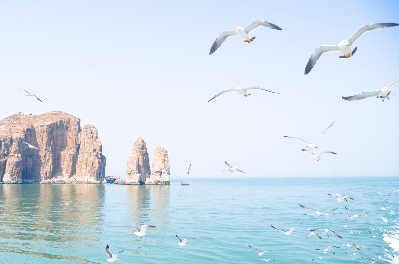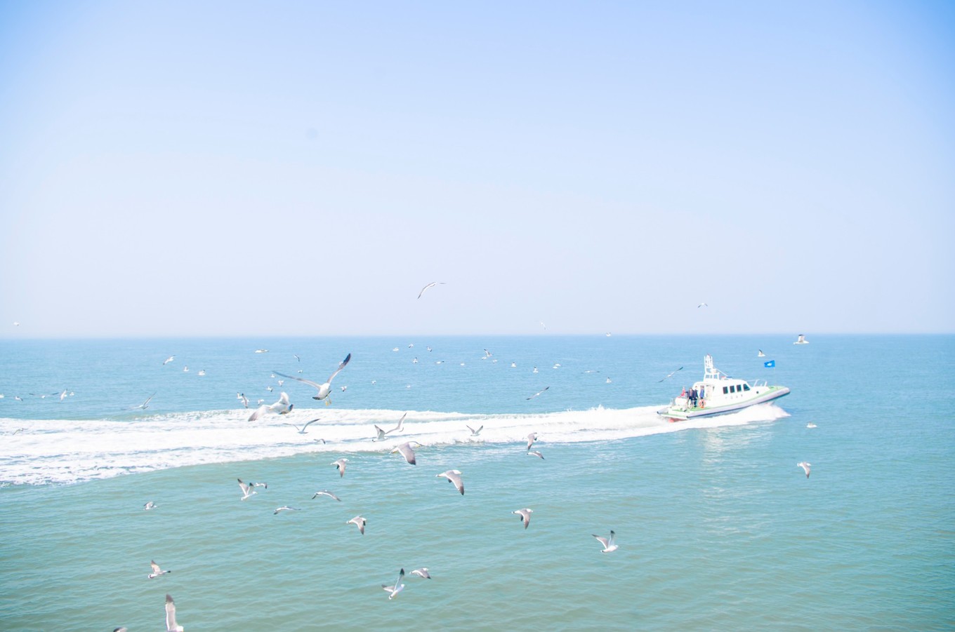萬鳥島,其實若要放到我們廣闊的地圖上來說,它也只能算上是一顆微乎其微的沙子??删褪沁@么小的一個島,它孕育了無數(shù)的自然生靈。每年的四五月份,從西伯利亞或者東北的候鳥來此過冬,其中很大一部分是只黑尾鷗。而他們在此地安家落戶,培養(yǎng)下一代的幼鳥。等到五月份多時,幼鳥都出生后,真真是萬鳥千人的景象了。我們?nèi)サ臅r候是四月頭,這個時候的海鷗并不算多,但此番景象已使我們難忘。聽漁家大姐說以前是可以上島的,不過有些人上島掏海鷗蛋發(fā)生過旅游事故,所有的旅游公司就取消了上島的計劃。人與自然還是應好好相處的啊...