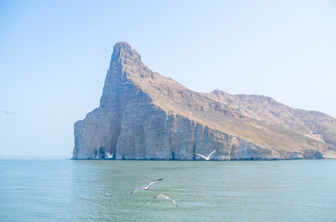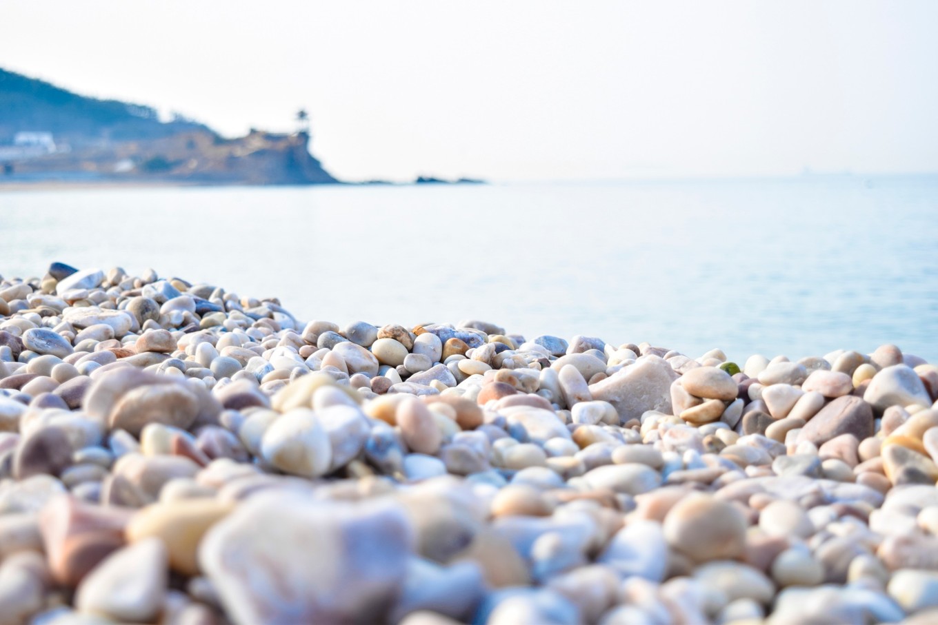 中午的時候,海面上還有些霧氣。遠方的海面上有條紅色的船,襯著看得不太清楚的水汽,也多出來幾分藝術家的氣質(zhì)。