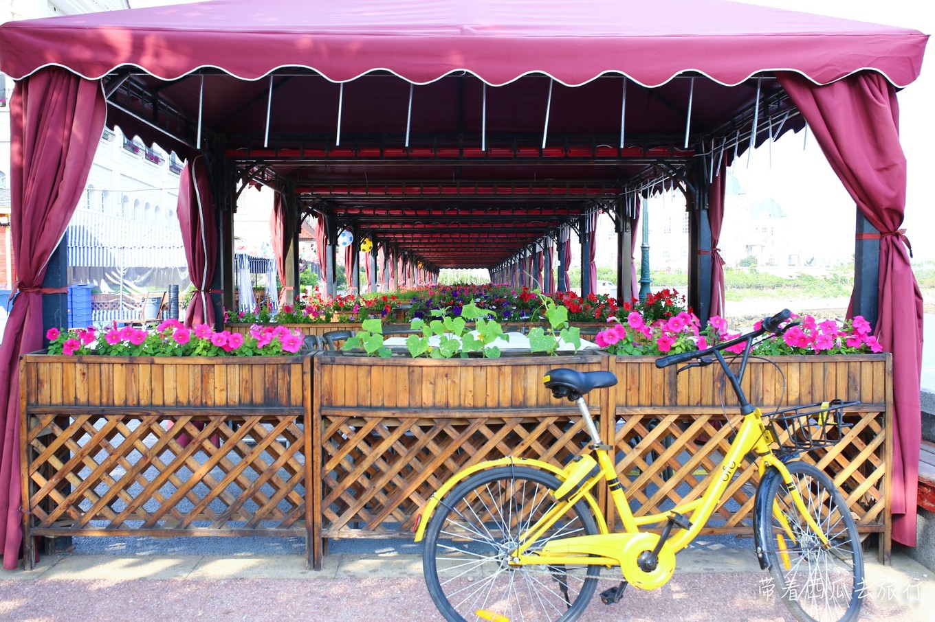 海邊歐式建筑群里飯店搭得小帳篷,但是這個(gè)點(diǎn)沒有營業(yè)。