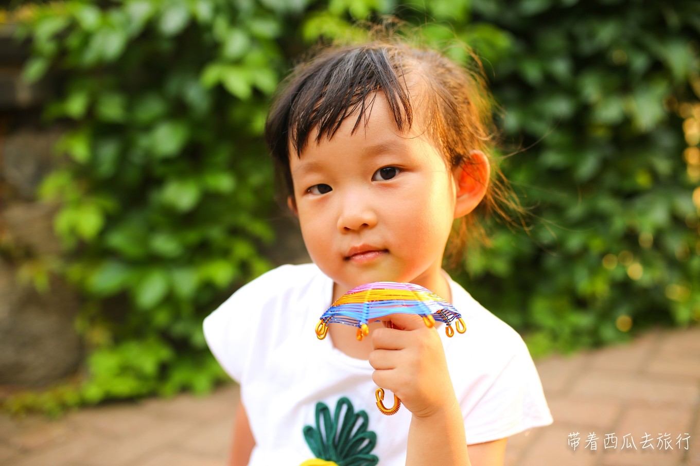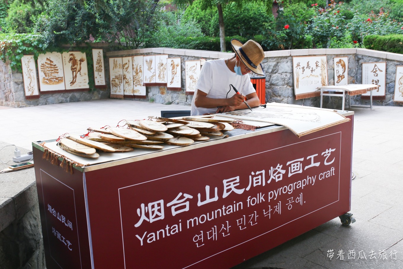 進(jìn)入煙臺(tái)山公園,我們就看到了網(wǎng)紅老大爺。給小西瓜買了一個(gè)手工編織的小傘,20元。