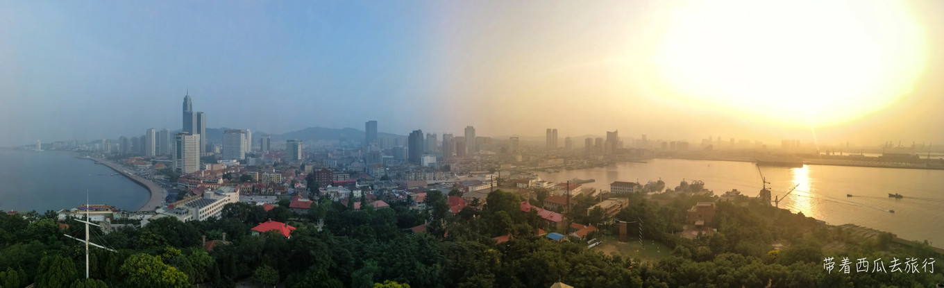 燈塔看煙臺(tái)全景,真的是兩個(gè)顏色(手機(jī)拍攝)