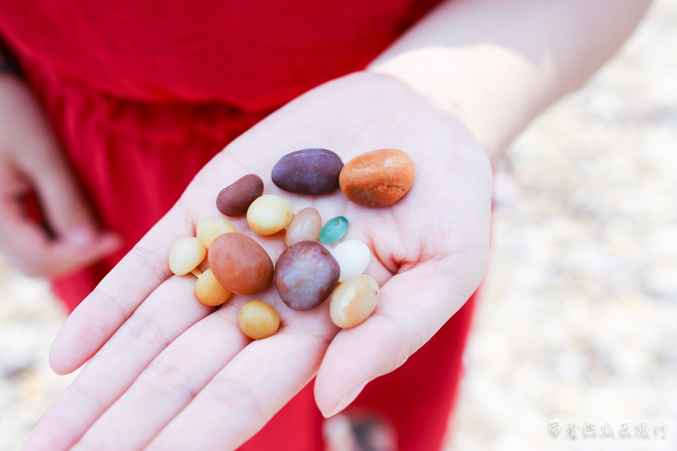 在這里,第一次感受到了長島的特色,整個(gè)海灘沒有沙子,全是這樣的球石,真的很漂亮。用小西瓜的話就是“金銀財(cái)寶”