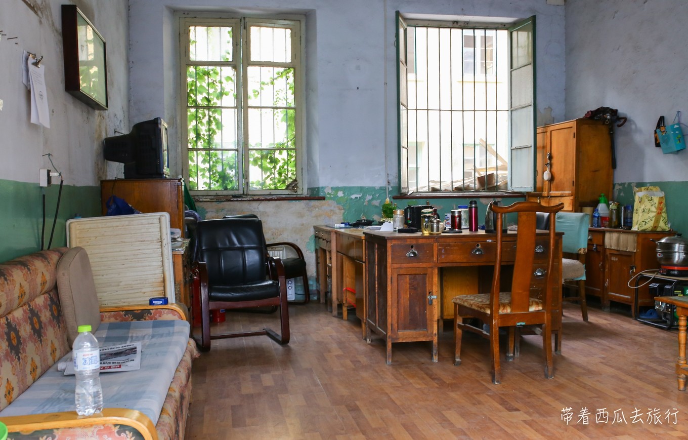 這是一個(gè)老建筑的內(nèi)部,陳設(shè)也十分有年代感。