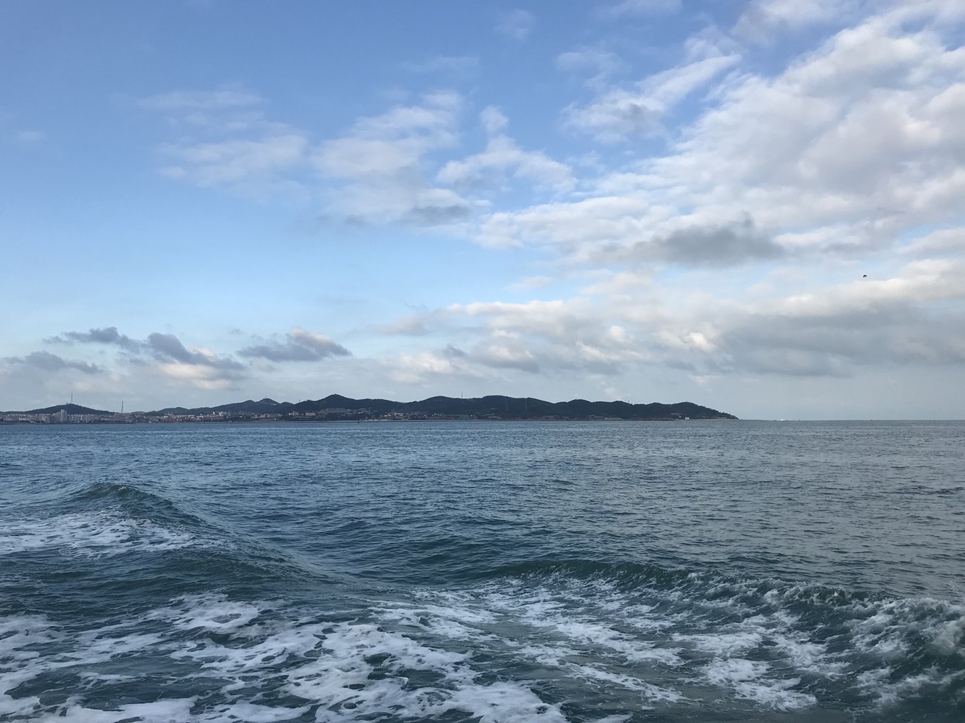 五號(hào)早晨在蓬萊吃了一碗蓬萊小面,便來(lái)到碼頭,旅游旺季碼頭人多車多,一切都要趕早。碼頭停車場(chǎng)收費(fèi)雖高,但管理相對(duì)規(guī)范。蓬萊發(fā)船管理比較嚴(yán)格,實(shí)名制購(gòu)票,對(duì)號(hào)入座。從北隍城返回時(shí),身份證審查比較寬松,冒充一下當(dāng)?shù)鼐用駪?yīng)該是比較容易。尋仙12準(zhǔn)時(shí)出發(fā),乘風(fēng)破浪,在海天之間前行!