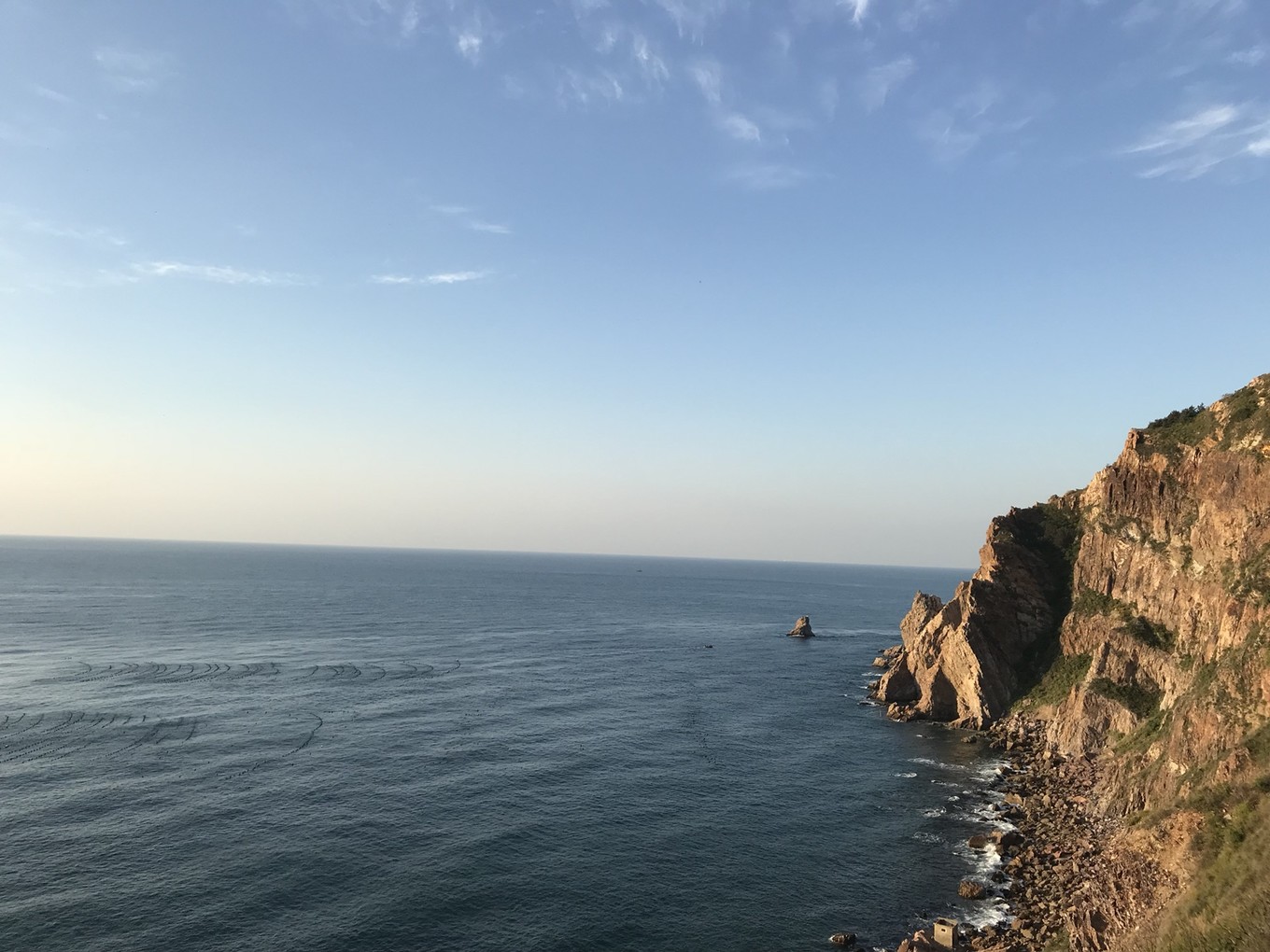 島上最高點(diǎn)是燈塔山,因山上燈塔而得名,山不高,從山前村委直接有大路到山下,從部隊(duì)的營(yíng)區(qū)門口順路而上,見到臺(tái)階,沿著臺(tái)階而上,直接到達(dá)燈塔。站在山頂,北望可以看到大連的老鐵山,這里無(wú)論是欣賞日出還是日落,都是絕佳之處。