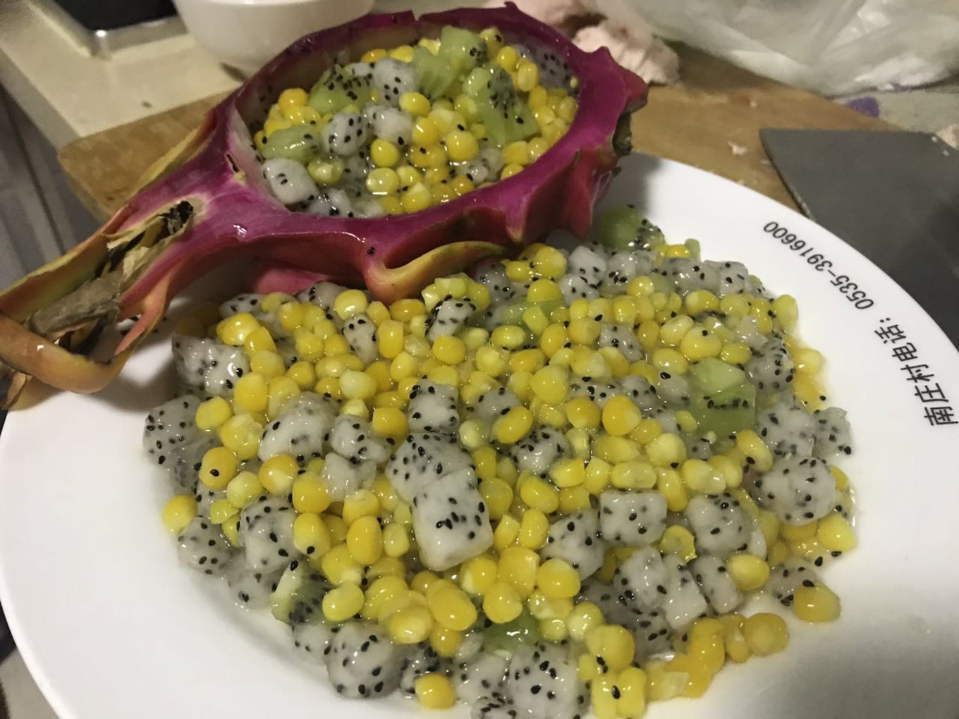 老板看我?guī)е⒆樱€給寶寶專門做了這道水果玉米,真是太貼心了