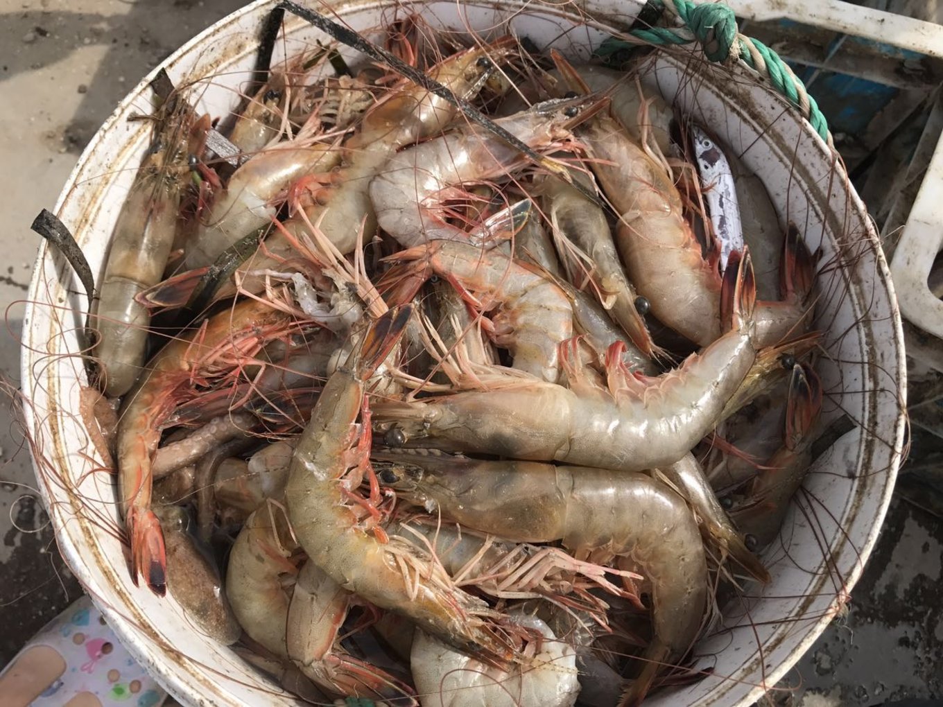 這是剛打撈上來的大蝦,在外面幾十塊的大蝦這里只要幾塊錢。。。。老板,給我來20只大蝦,我當(dāng)零食吃!