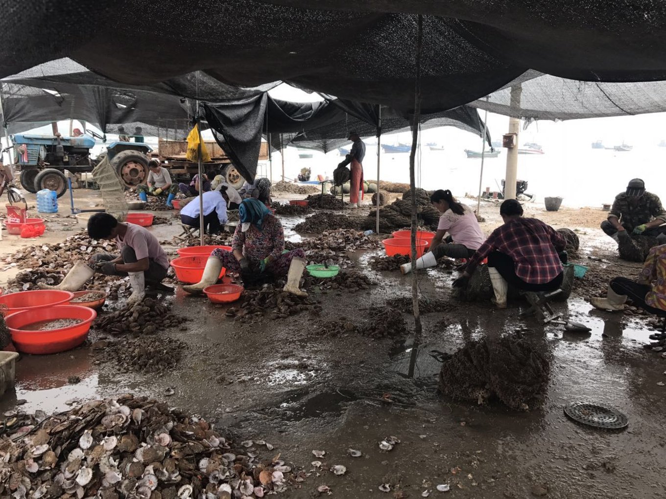 快到趕海園的時候,當(dāng)?shù)貪O民在收扇貝,好多的扇貝啊,吃都吃不完,這是當(dāng)?shù)厝说闹饕?jīng)濟(jì)收入來源,我走的時候就買了幾包干扇貝丁,一手貨源,便宜還新鮮。