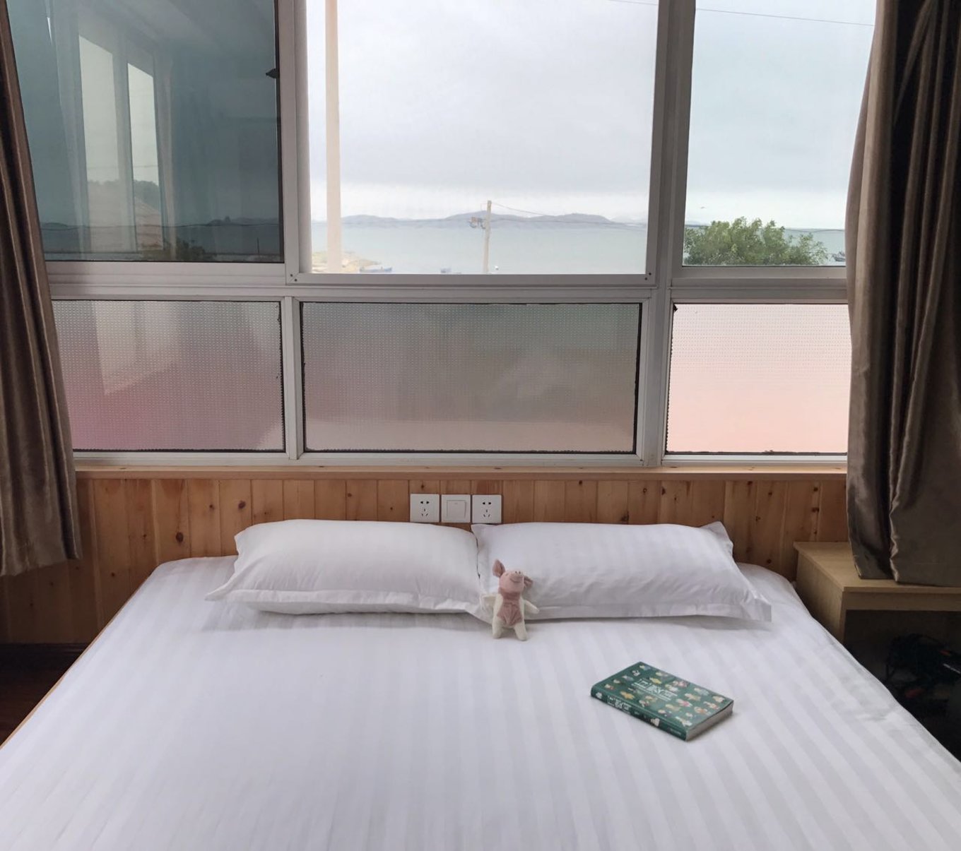 午飯后,我們就回房間睡覺了,房間很美,開窗就是海,可謂一線海景房,我?guī)Я宋曳凵男∝i,陪我走過千山萬水的小豬~聽著海浪聲,很快就入夢了