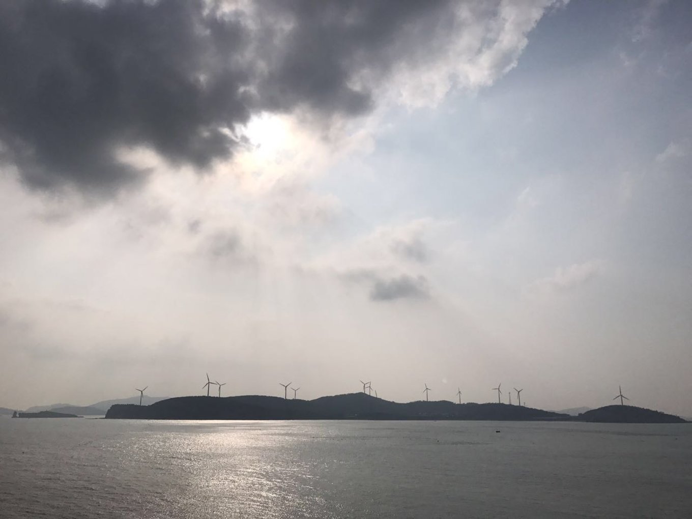 這是在船上看到的景色,這里是小黑山島,島上沒什么人,為了保護(hù)候鳥,據(jù)說風(fēng)力發(fā)電的設(shè)備都要拆