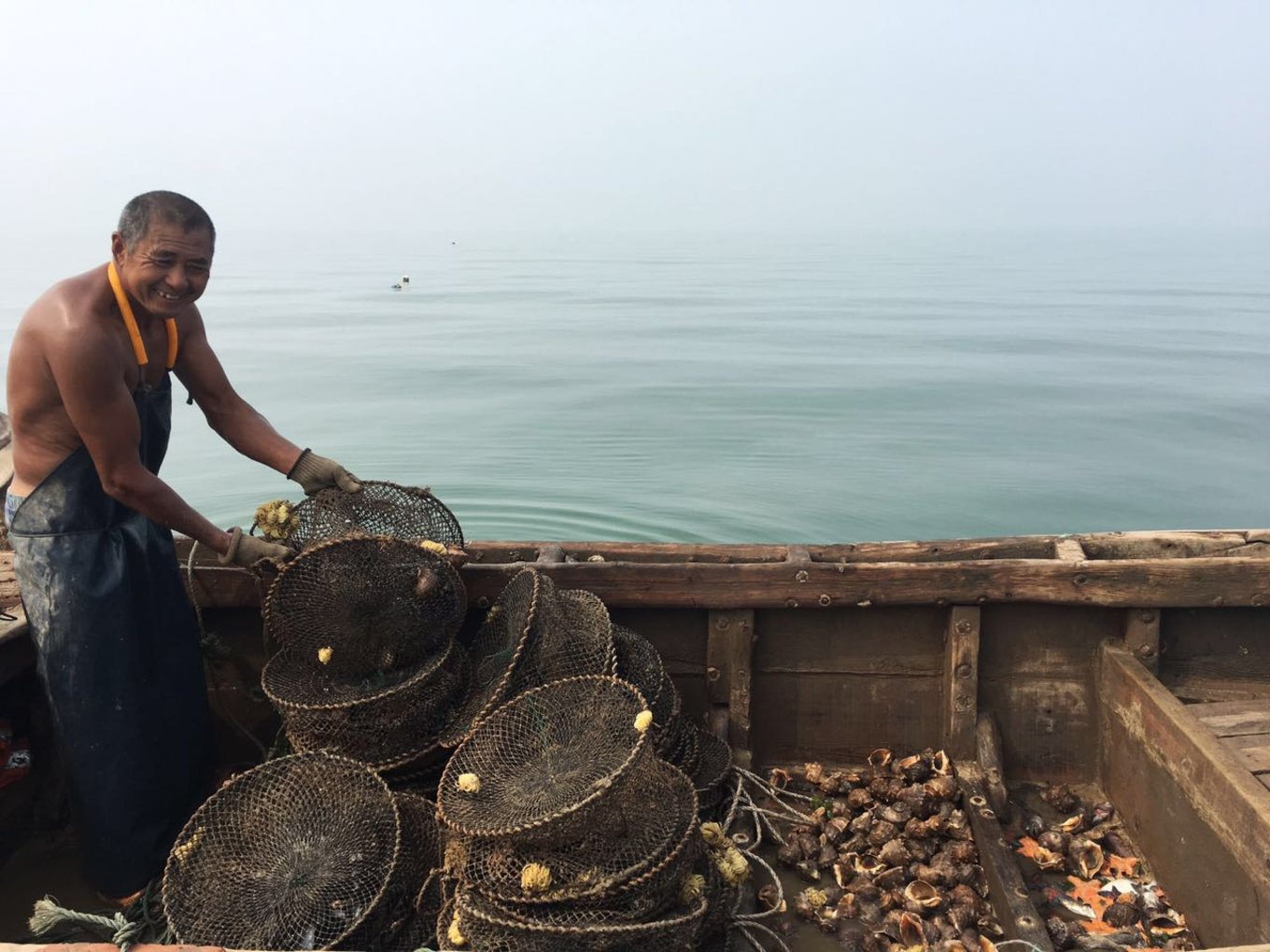 這漁民爺爺?shù)募∪?。。。很有感覺吧,我很喜歡這張照片~更喜歡籠子里的東西啊。。那么多的海螺啊。。。螃蟹啊。。。啊。。。
