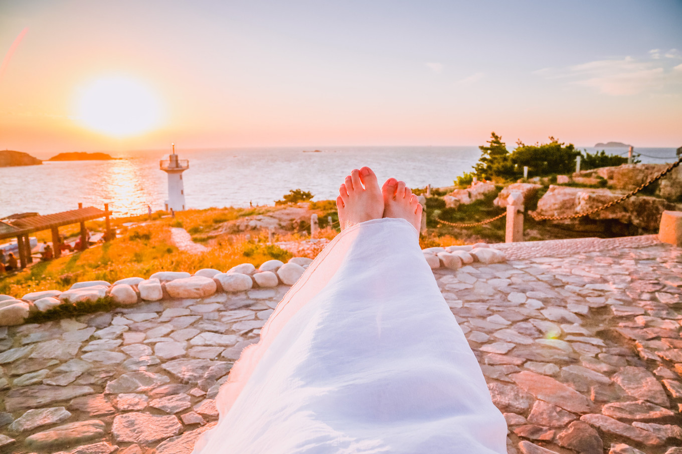 一起拖鞋靜靜地等待落日,躺在參差不齊的地板上,看著地平線最后的序曲,十分閑適~