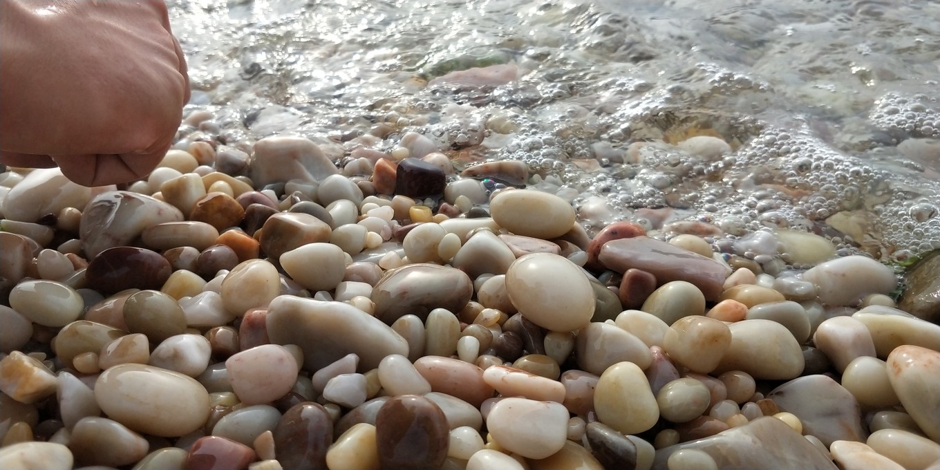 走到海灘都是小石頭,腳得到了充分的按摩~