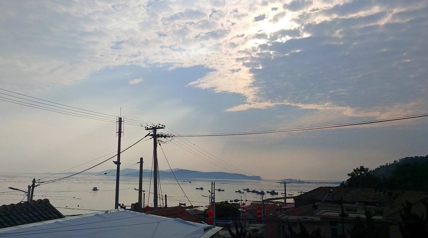 坐著公交繞過(guò)縣城回到民宿午休。傍晚竟然出現(xiàn)了藍(lán)天,還有一絲夕陽(yáng),雖然不是很壯觀(guān),但是足夠美了~