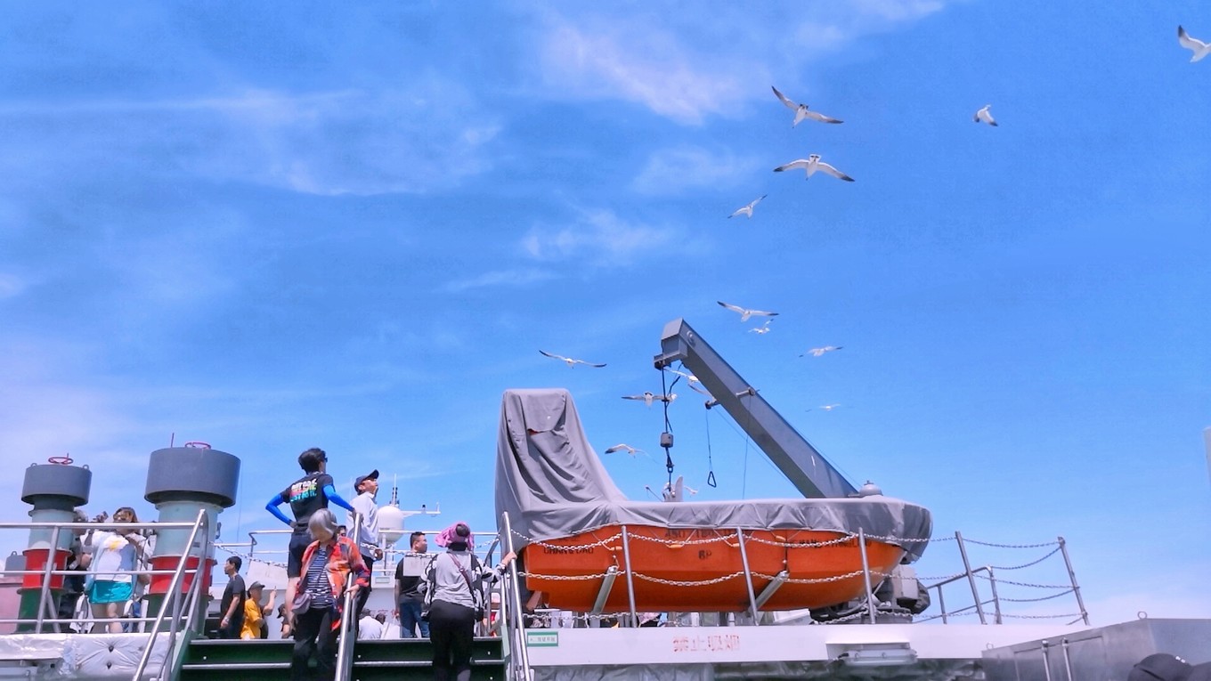 我們不會(huì)登陸萬鳥島,只會(huì)開船繞島一圈,可以看到島上生態(tài)環(huán)境很好,而且海鷗也確實(shí)是在萬鳥島周圍最多。登陸廟島其實(shí)是沒抱多大期待的,廟島主要是媽祖廟地,道教的,可以進(jìn)行拜謁。我們主要是來廟島找洗手間,因?yàn)榇系南词珠g真的是一言難盡,而且喂完海鷗手上一股魚腸腥味,很想洗手。但是找了很久,發(fā)現(xiàn)廟島的洗手間也是很簡(jiǎn)陋的那種,根本沒法洗手。不過廟島上的烤魷魚很好吃,玩了一上午剛好餓了吃了一串烤魷魚,很滿足。在漁家樂吃完午飯就準(zhǔn)備返程啦。