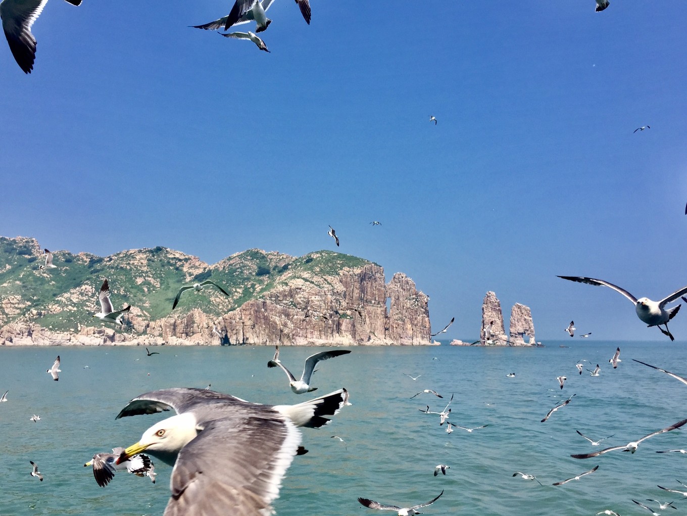 然后再來(lái)說(shuō)萬(wàn)鳥島,這個(gè)真是有個(gè)題外話的長(zhǎng)篇大論。出海乃是海島游必不可少項(xiàng)目。長(zhǎng)島著名的便是群礁群島,當(dāng)然最愛(ài)之一便是萬(wàn)鳥島,不能登島,渡輪??繊u邊,與成千上萬(wàn)海鷗零距離接觸。當(dāng)這些異己的生物在你面前呈現(xiàn)出生命的擴(kuò)張力,大自然的秘密,所有的鬼斧神工之作,都讓你啞然失聲只剩唏噓。