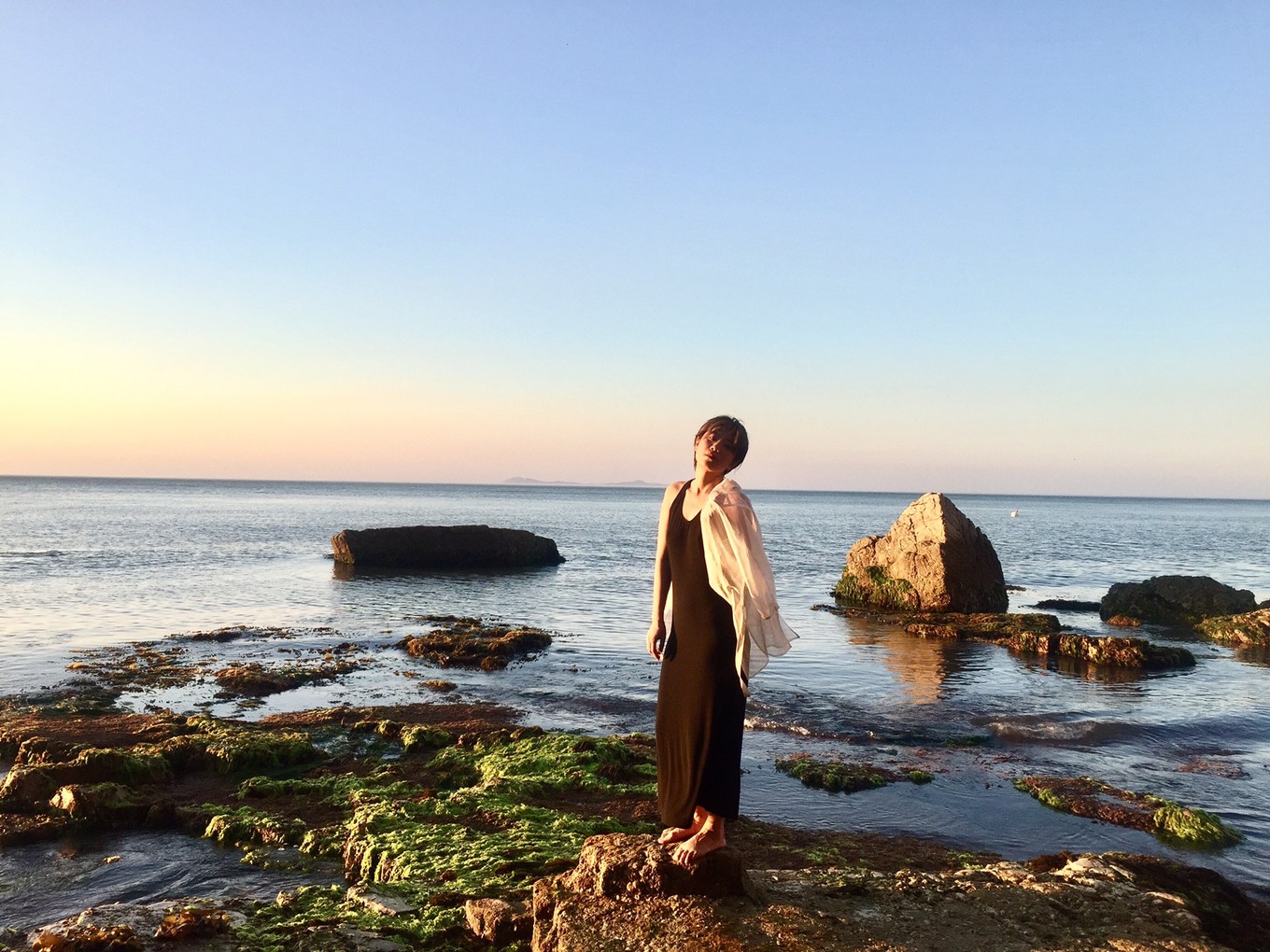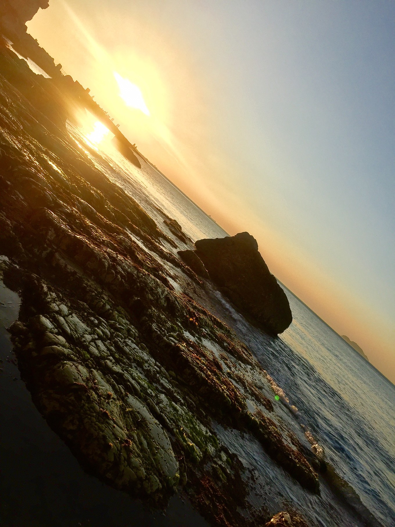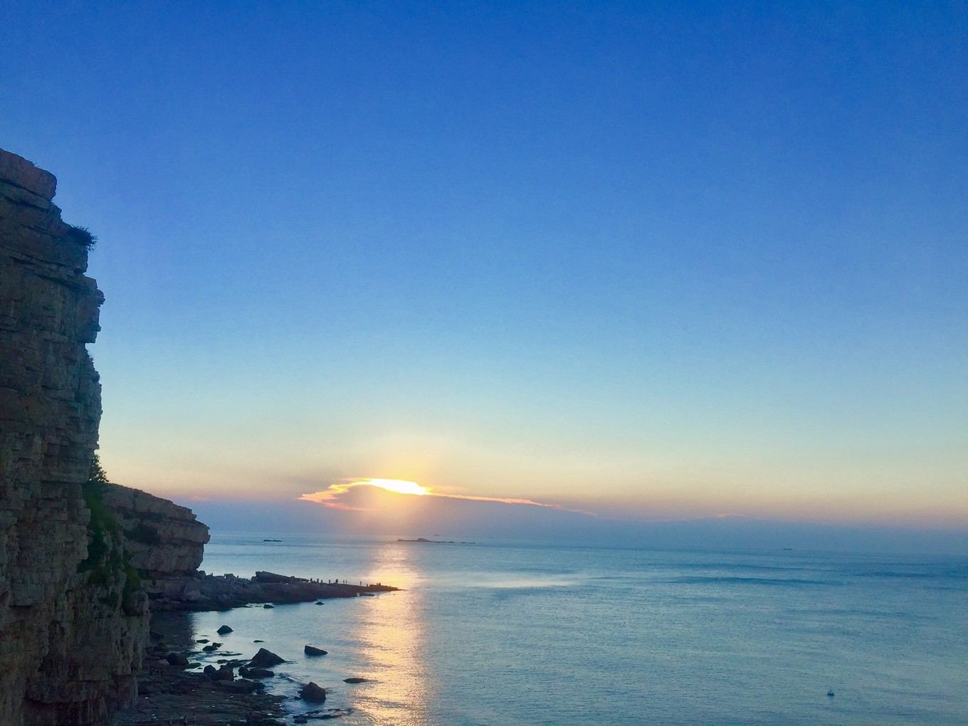 九丈崖適合觀海觀日落,可惜了夕陽(yáng)西下的萬(wàn)丈光芒被掩藏在萬(wàn)里彩云之下。這大概是長(zhǎng)島的特產(chǎn)了吧。