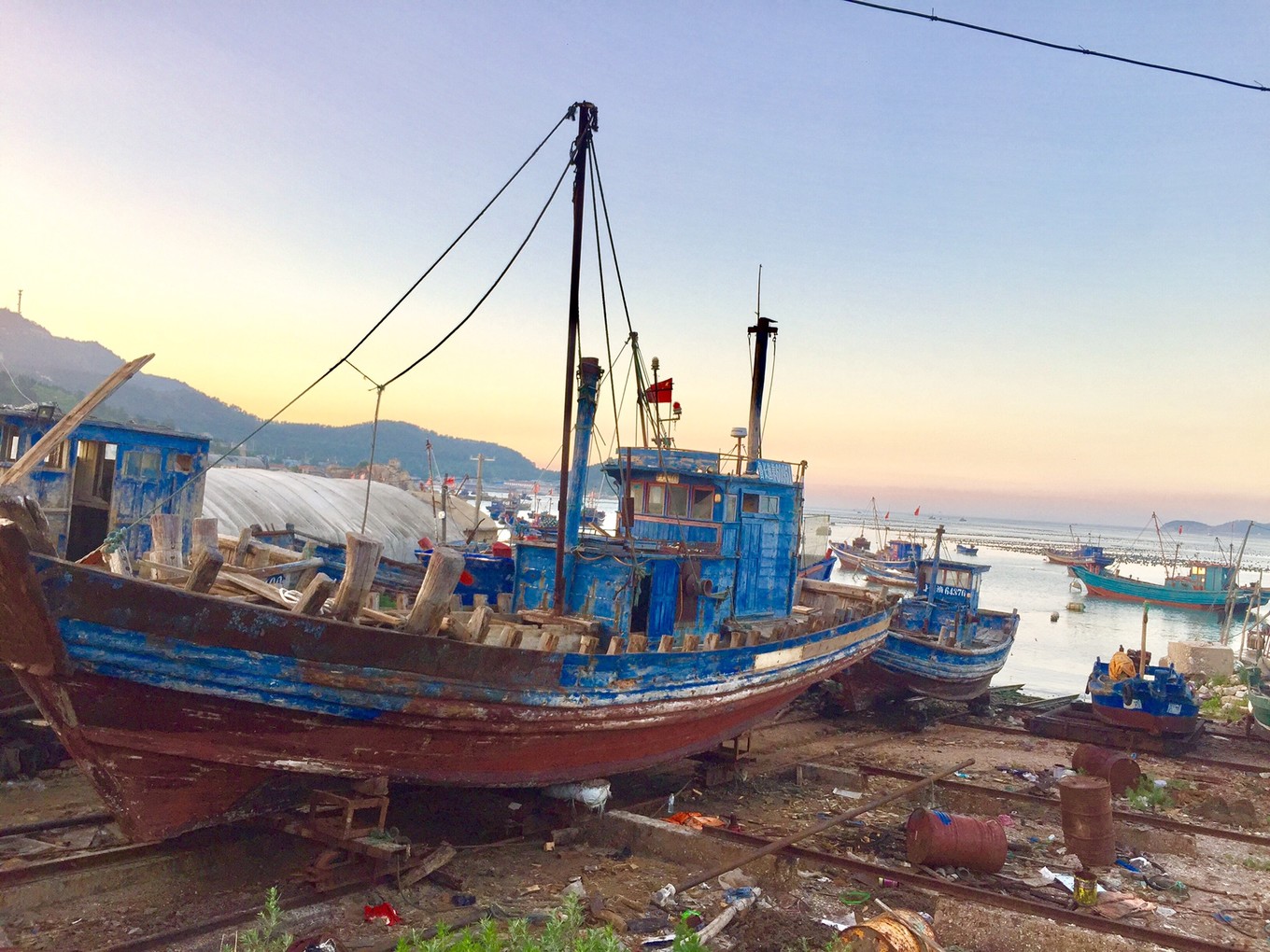 喜歡長(zhǎng)島的氣候,早晚涼爽,每天清晨被清風(fēng)鳥語(yǔ)和偷偷溜入室內(nèi)的晨光喚醒。長(zhǎng)島靠漁業(yè)養(yǎng)殖業(yè)為生,普通的隨手一拍可能入眼的便是一艘艘破船。但也正是這破船,養(yǎng)活了這一方人??亢樯娜司次反蠛R簿次飞?,懂得生生不息與反哺自然的道理。