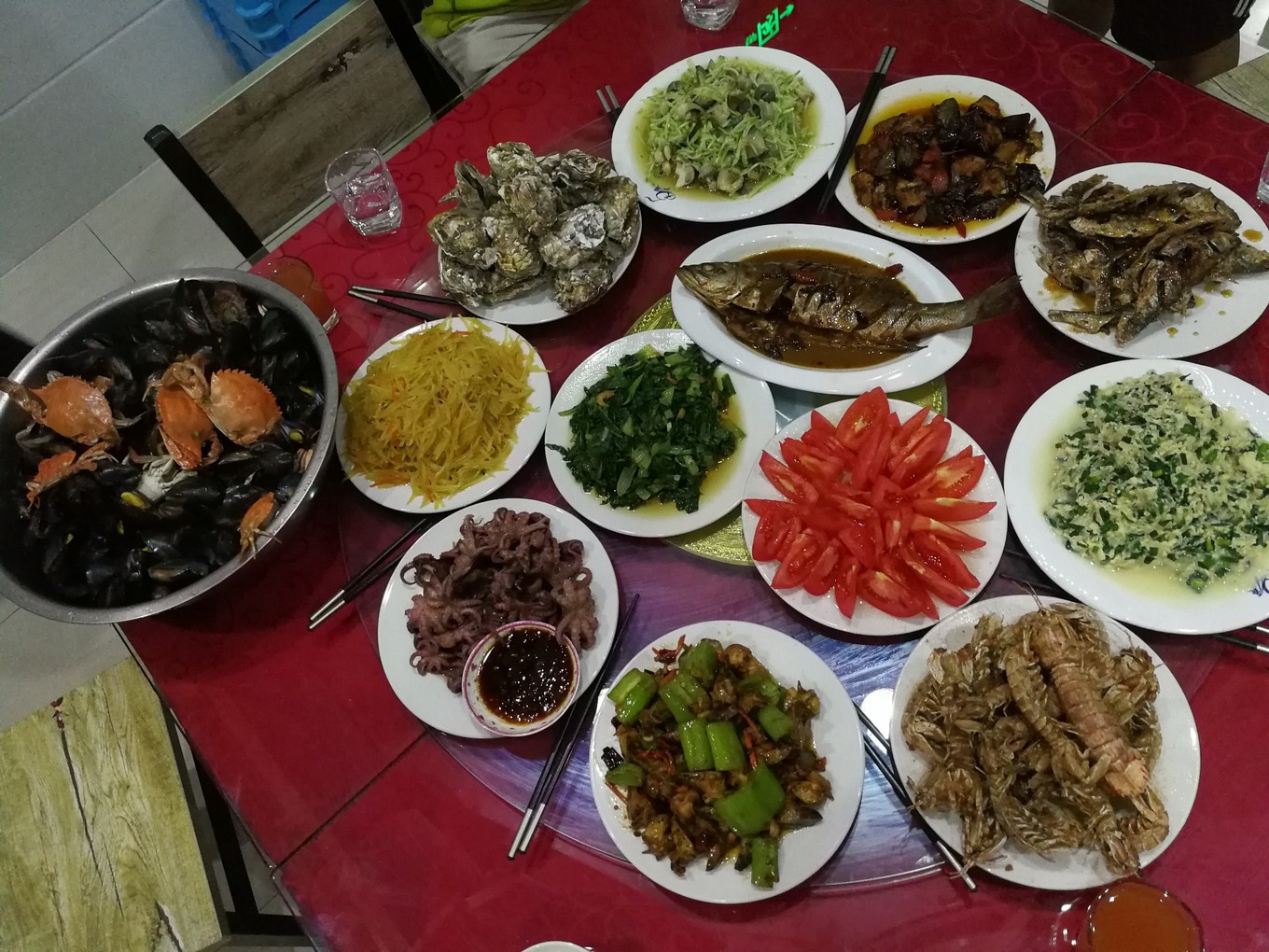晚餐依舊豐盛,雖然反復多次跟阿姨說,我們胃口小,少做一點,但每一餐阿姨都變著花樣讓我們品嘗到各種海鮮及當?shù)孛朗场?/p>