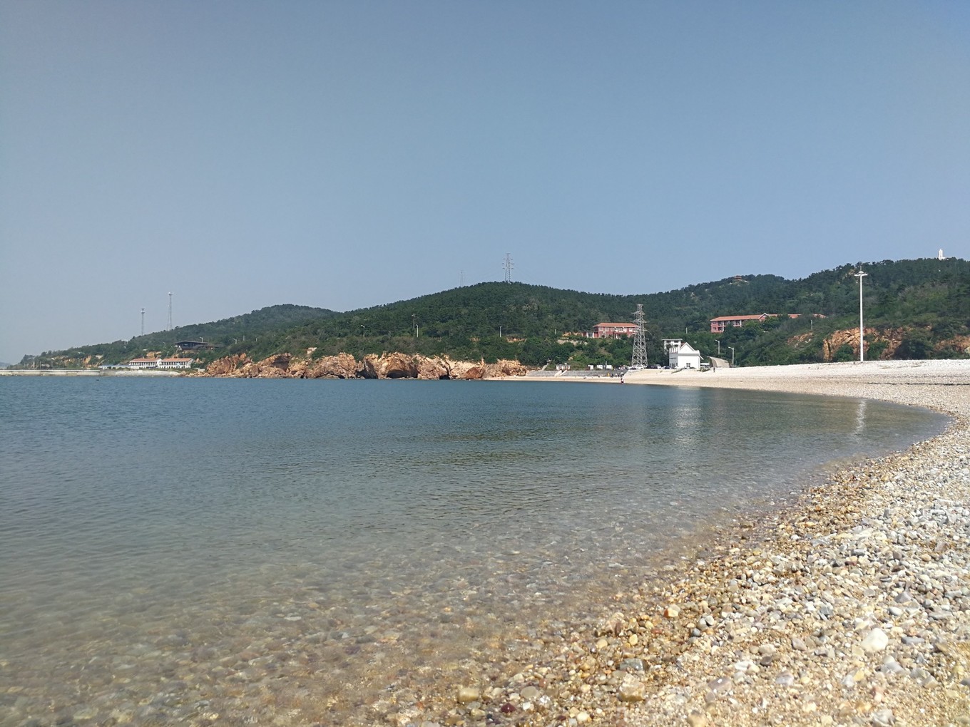 月牙灣位于北長山島北部,長約1公里,依青山,抱碧水,珠玉長灘鑲嵌其間,恬靜的海灣如深邃夜空中的一彎新月,珠璣萬斛的海灘如仙子灑落凡間的點點淚珠。山巒滴翠,海水碧綠,球石斑斕璨然。球磯彩石為中國四大名礫石之一,踏上球石灘,就像進入一個五彩繽紛,珠光寶氣的奇妙世界。