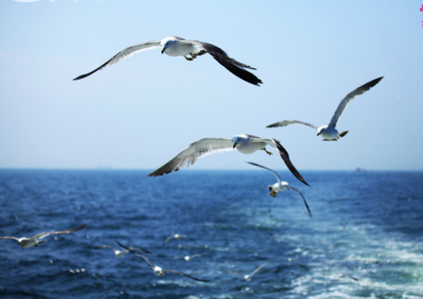登船的時候,就會有人兜售火腿腸,這是海鷗最愛的美味,拋向空中,海鷗成群結隊的俯沖搶食,太好玩了。