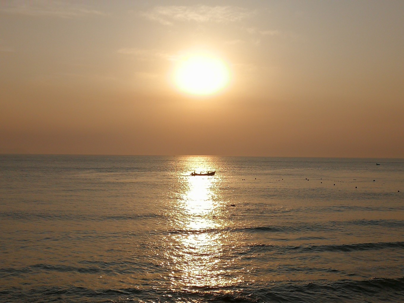 一葉小舟迎著朝陽駛向大海