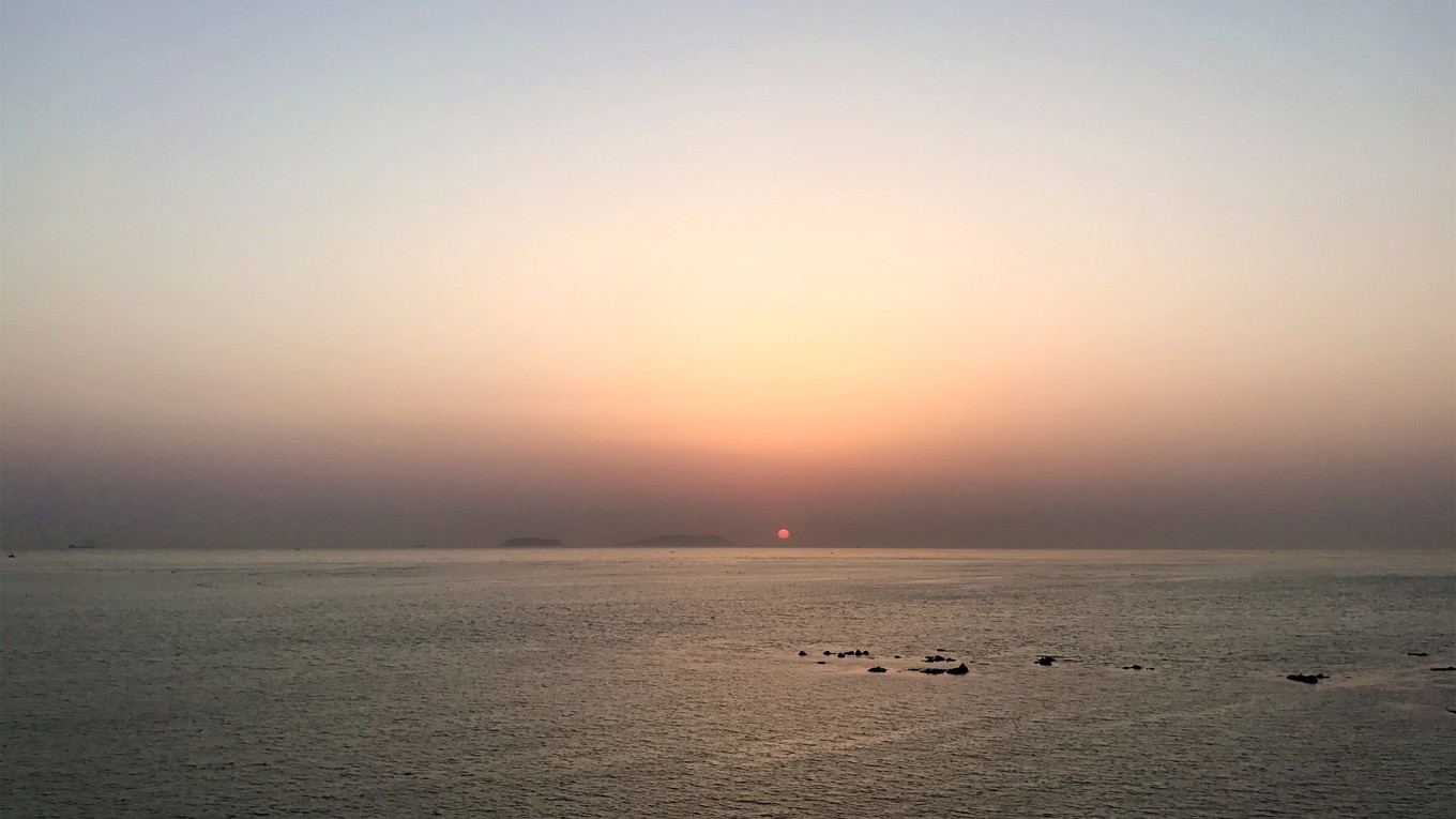 早上4點(diǎn)起床,跨海大橋上看日出。