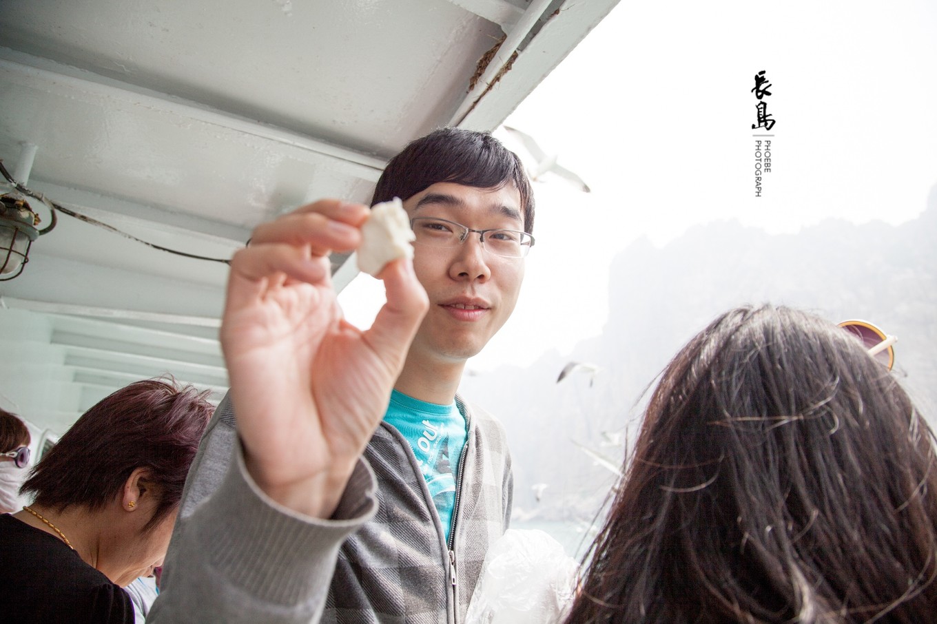 甲板上的風(fēng)很大,人們都是出來喂一會(huì)兒食再回去休息一下。盡管是旅游淡季,船艙里也坐滿了人。