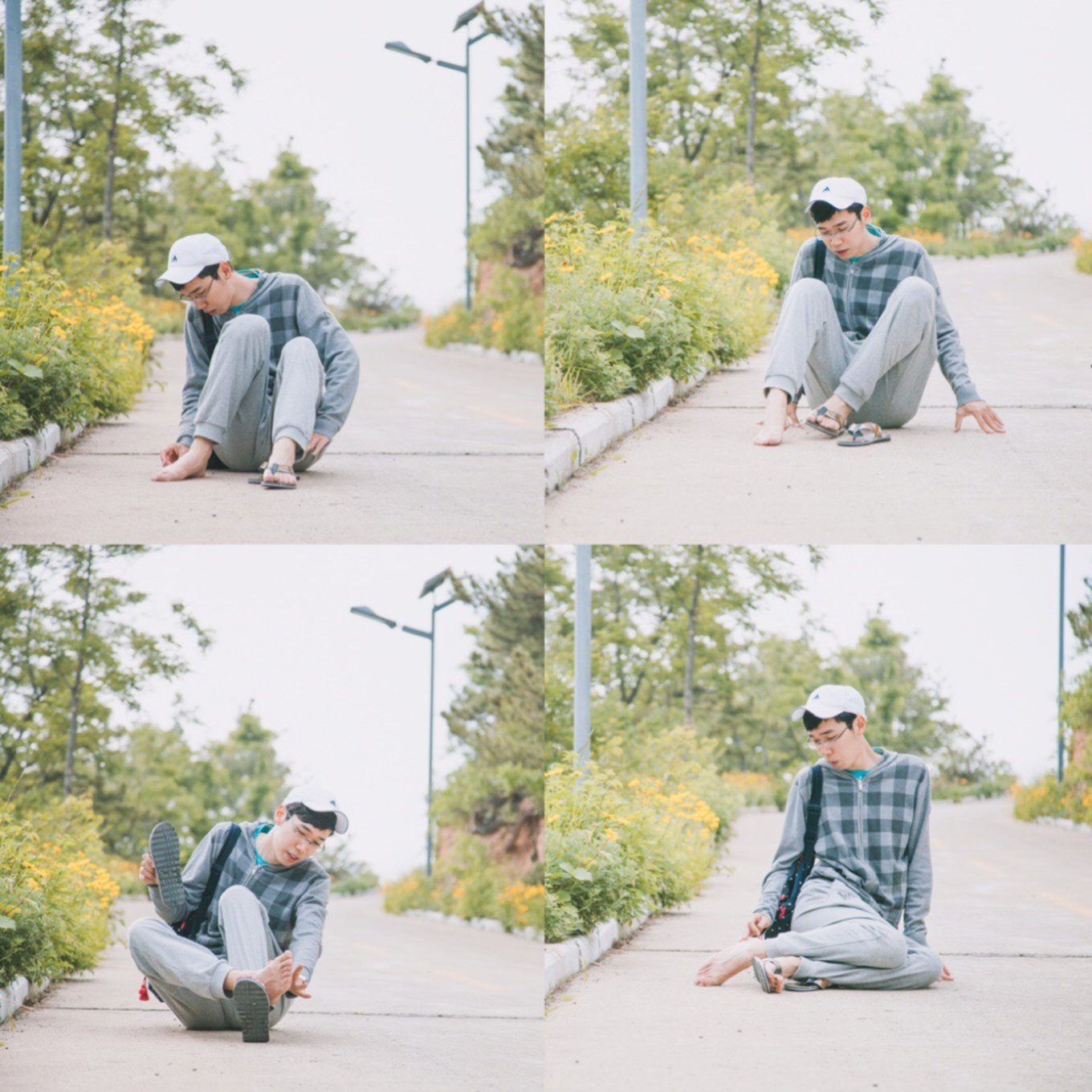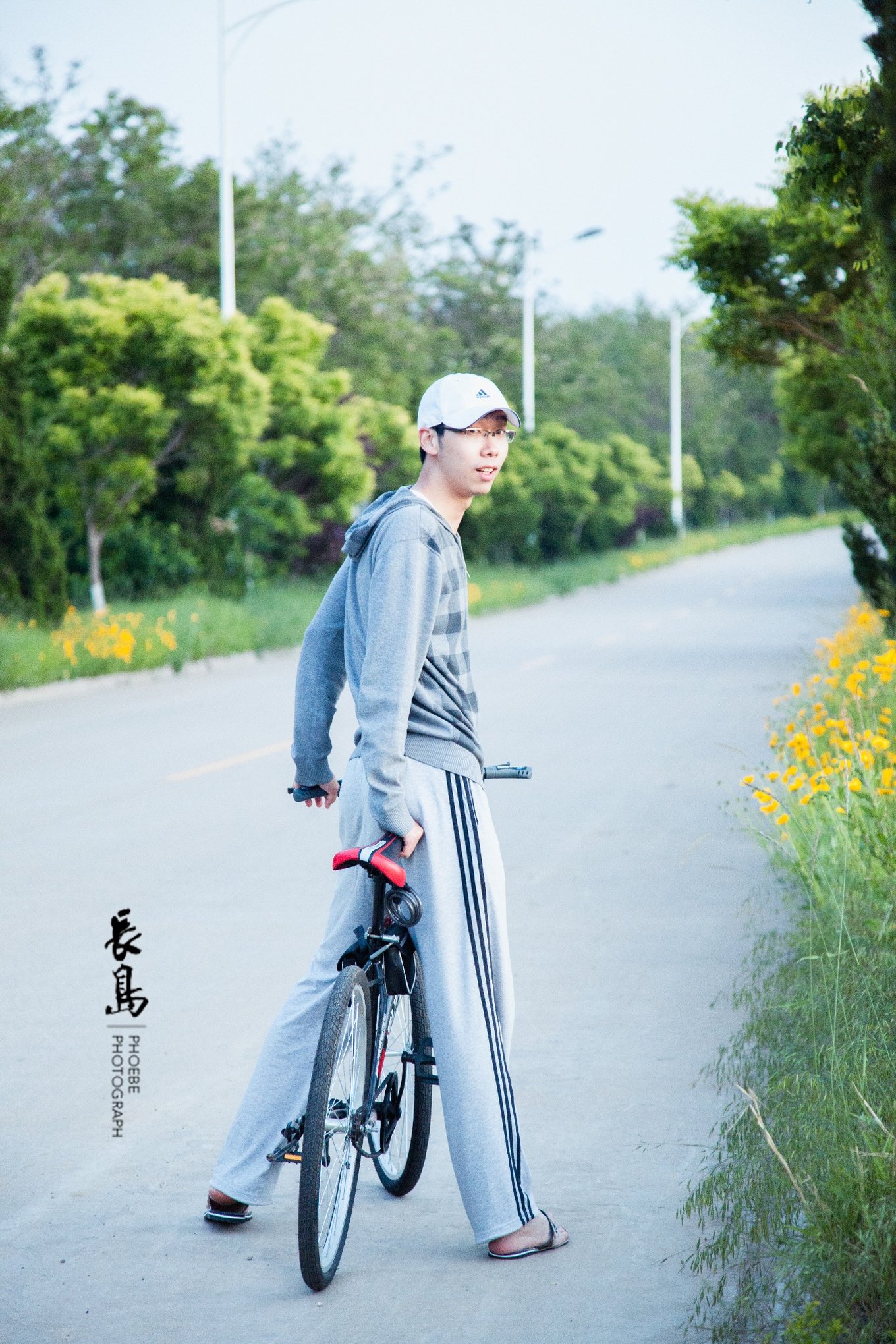 整個(gè)公園的游人非常少,我在前面蹦跳著跑來跑去,猛一回頭,松哥已經(jīng)全然不顧形象的坐路中間了。