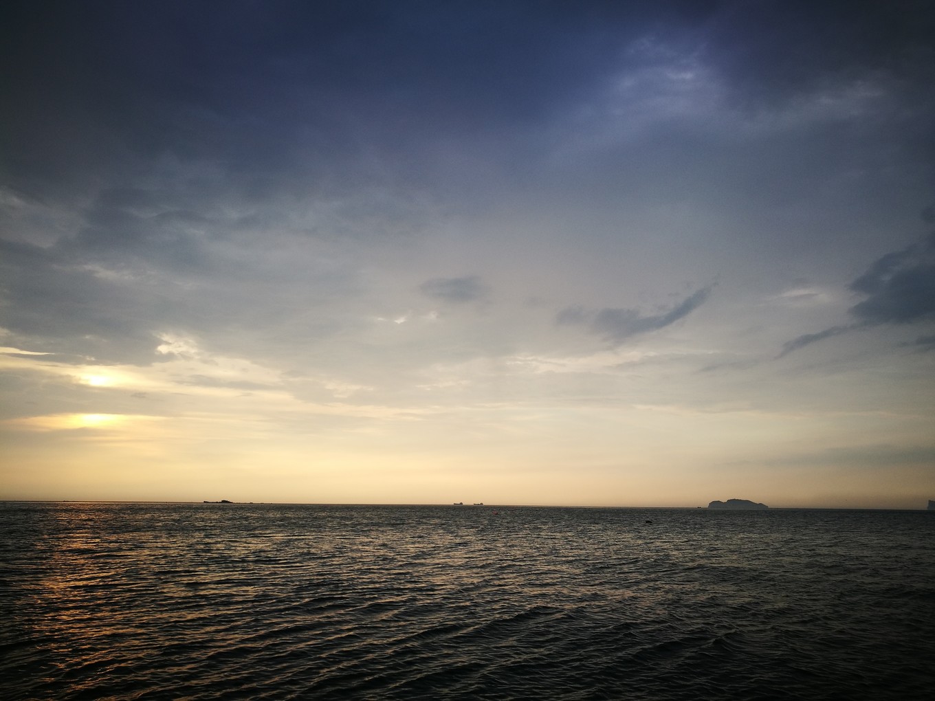 在船上看到了日落,心情好了起來。