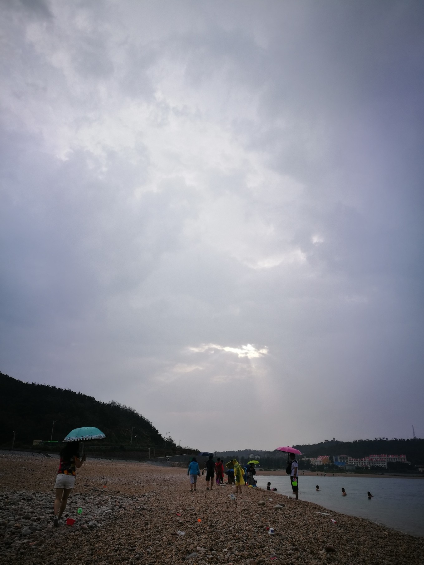 月牙灣是長(zhǎng)島著名景點(diǎn),以晶瑩剔透的圓石著稱,據(jù)說游客帶走的原因,沙灘下降了3米多,長(zhǎng)島縣已經(jīng)立法,今年10.1后,不準(zhǔn)帶圓石出島,查出罰款2萬。雖然下著雨,景區(qū)游客還是不少,遠(yuǎn)處的天空出現(xiàn)了太陽(yáng),難得見到了耶穌光。