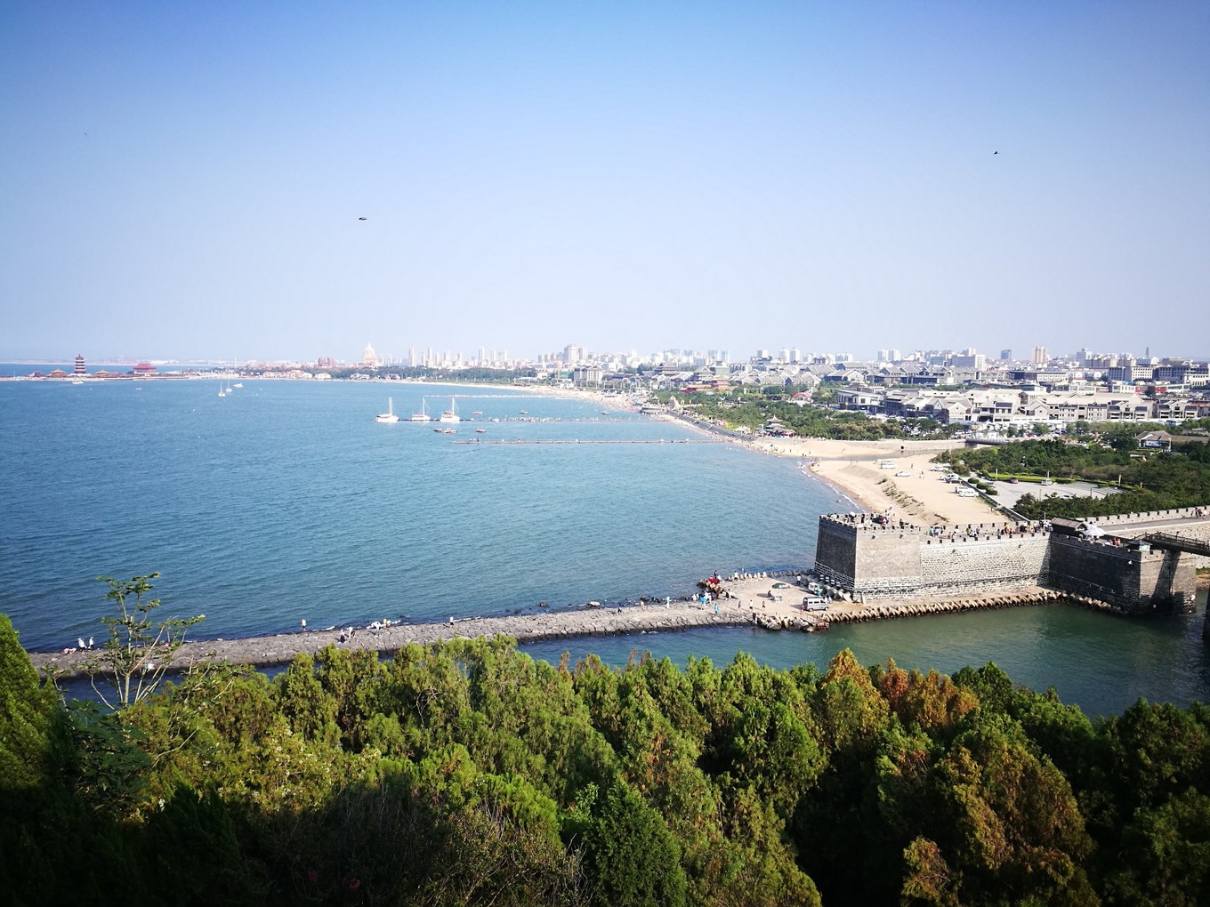 8月8日在蓬萊機(jī)場(chǎng)接上成都來的同學(xué),直奔四大名樓之一的蓬萊閣,開啟了愉快的長(zhǎng)島漁家樂兩日游旅程。