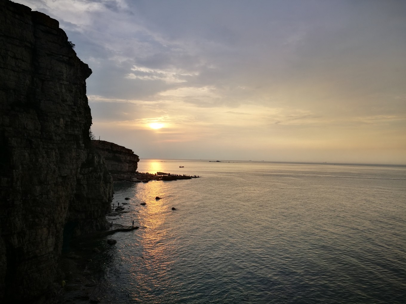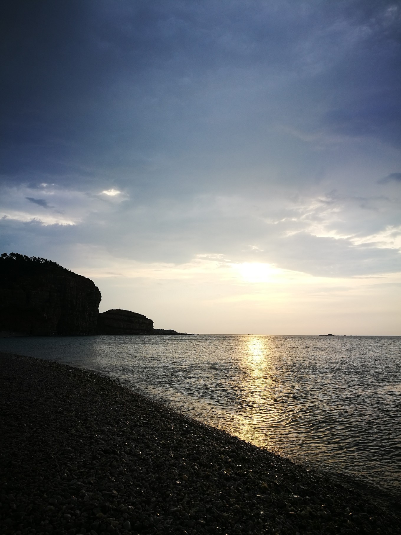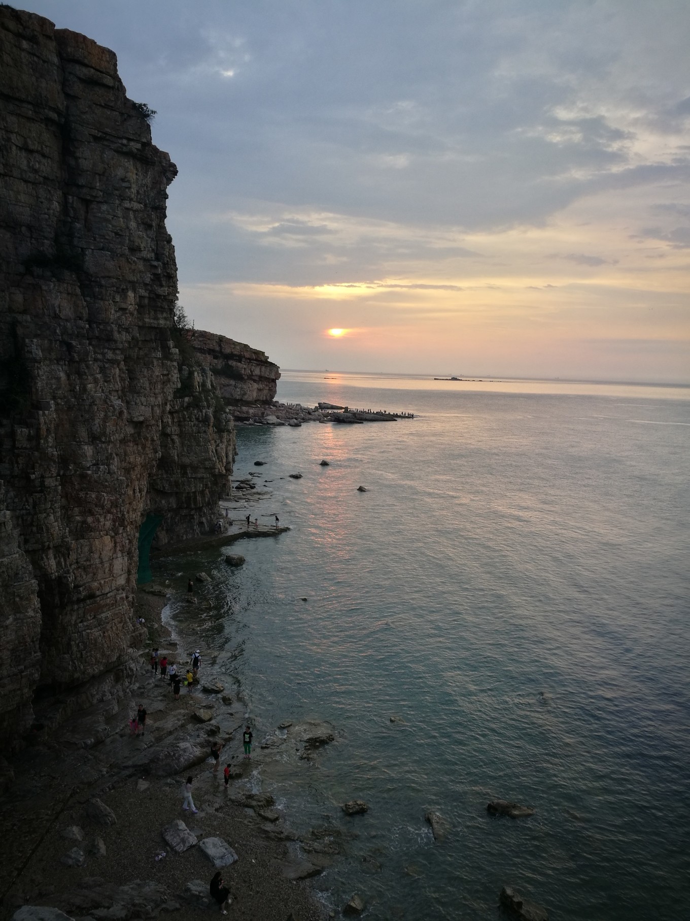 從月牙灣景區(qū)打車15元到了九丈崖,這時(shí),雨停了,趕上了落日,海面上霞光漂亮極了。