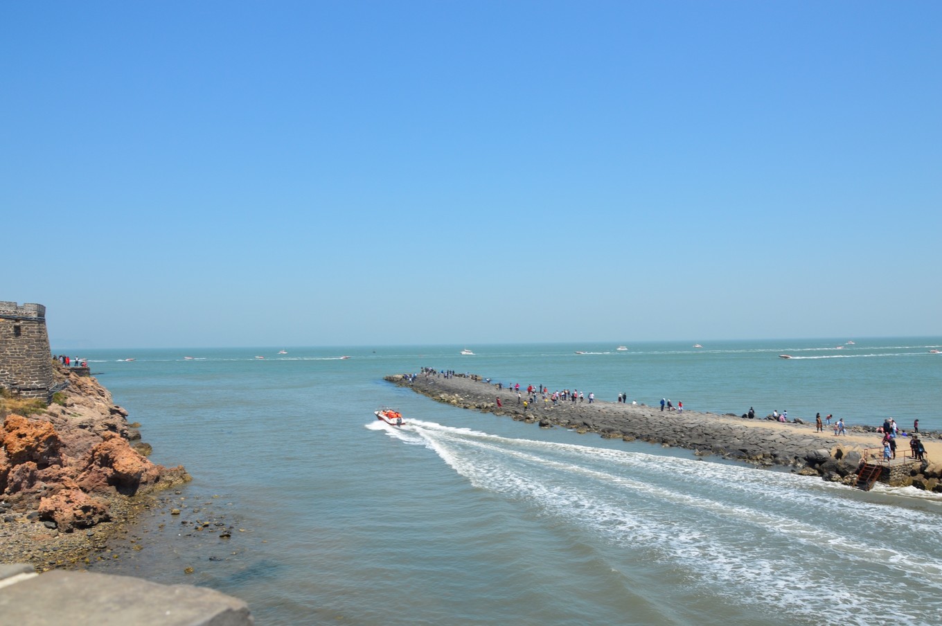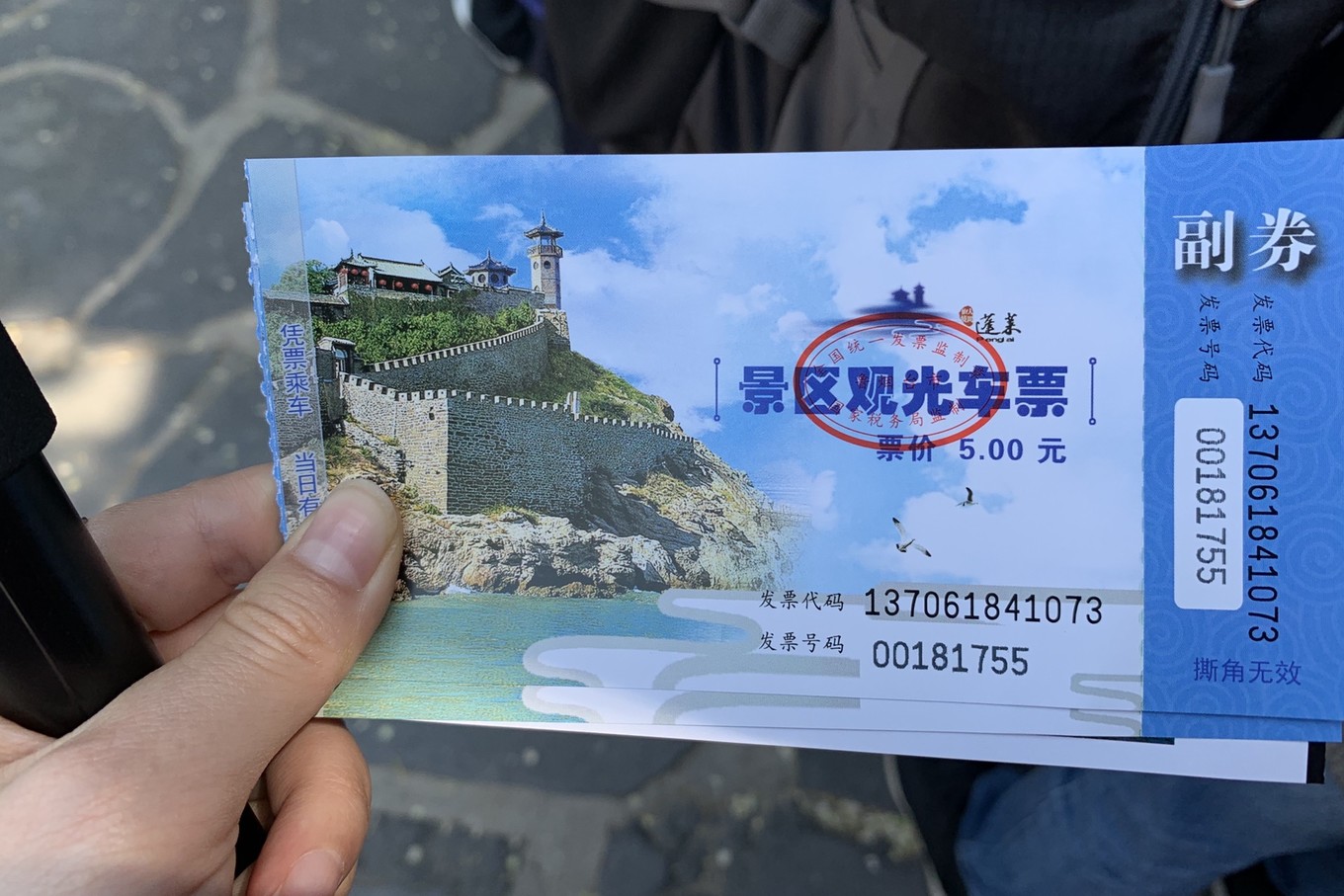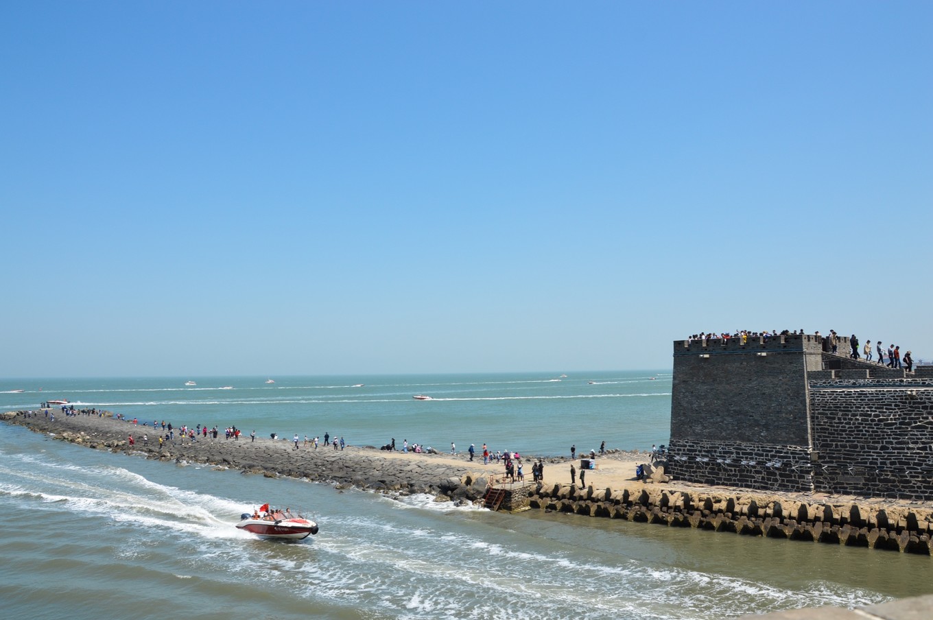 在這里能看到黃海和渤海的分界線,立了個界碑,但景區(qū)把最好的位置給占了,美其名曰免費拍照,給的是小照片,大照片要再花錢,跟之前去武隆的套路一樣。但我觀察了下,攝影師太隨意了,界碑后面站滿了人也不管,所以我沒去照,自己在背面照了下。