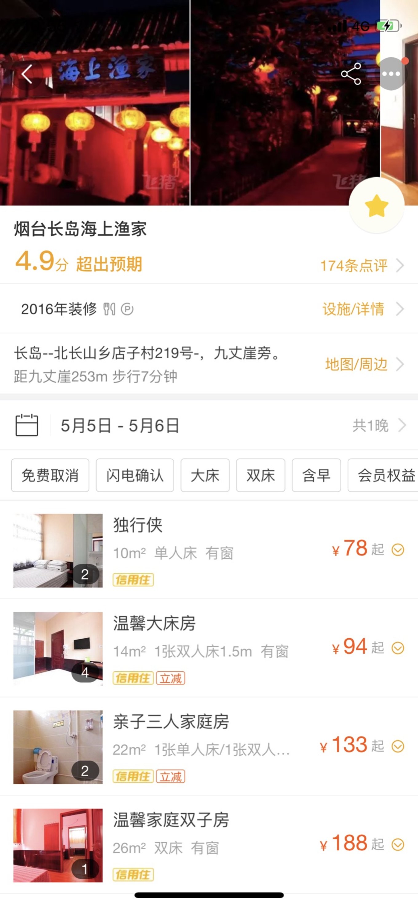 長島海上人家漁家樂我在飛豬上定的,但是島上吃飯并不方便,所以訂單只作為定金,到了按人頭補差價的。