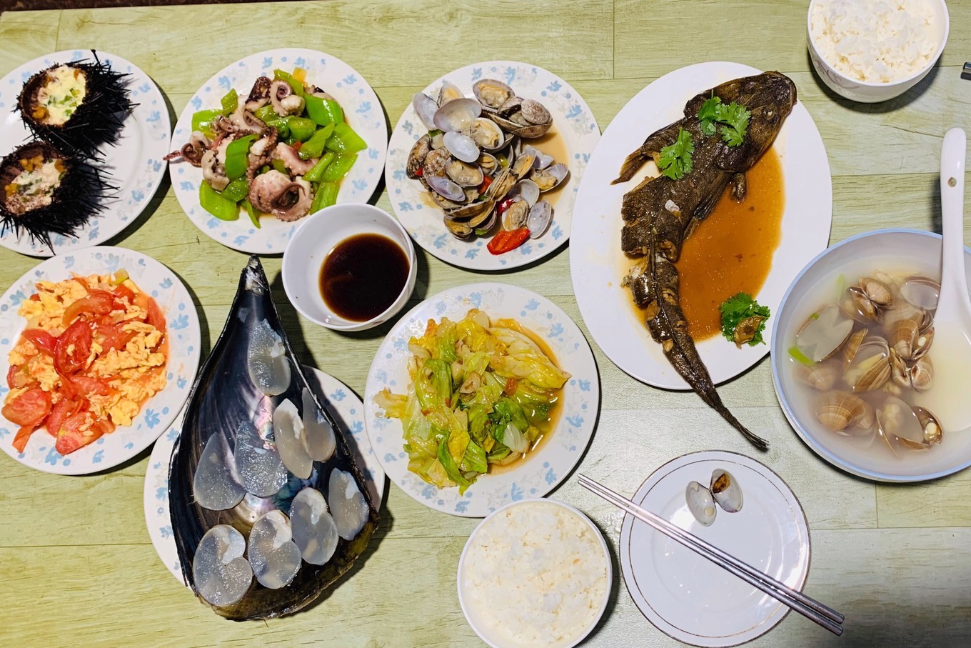 長島海上人家漁家樂第二頓呢,那個刺身叫赤貝,也是第一次吃。大海螺也好好吃呀,漁家樂的小姐姐還教我哪些能吃哪些不能吃~帶魚是鮮的,吃過之后覺得之前火車上吃的那個帶魚是坨