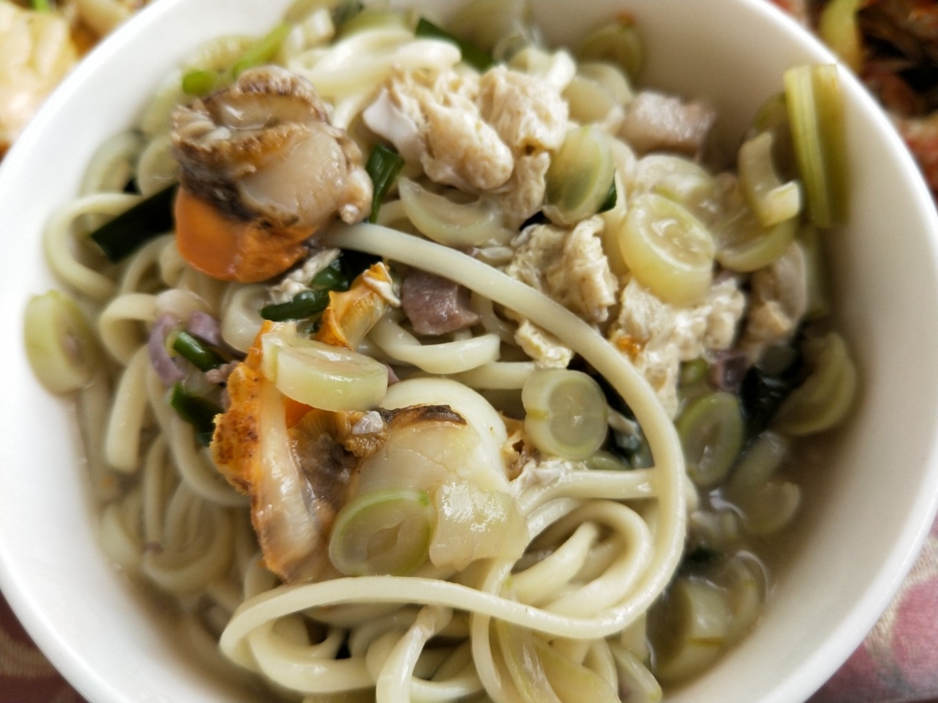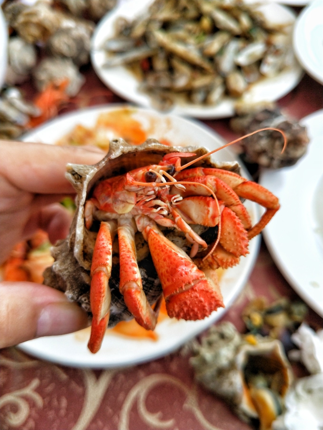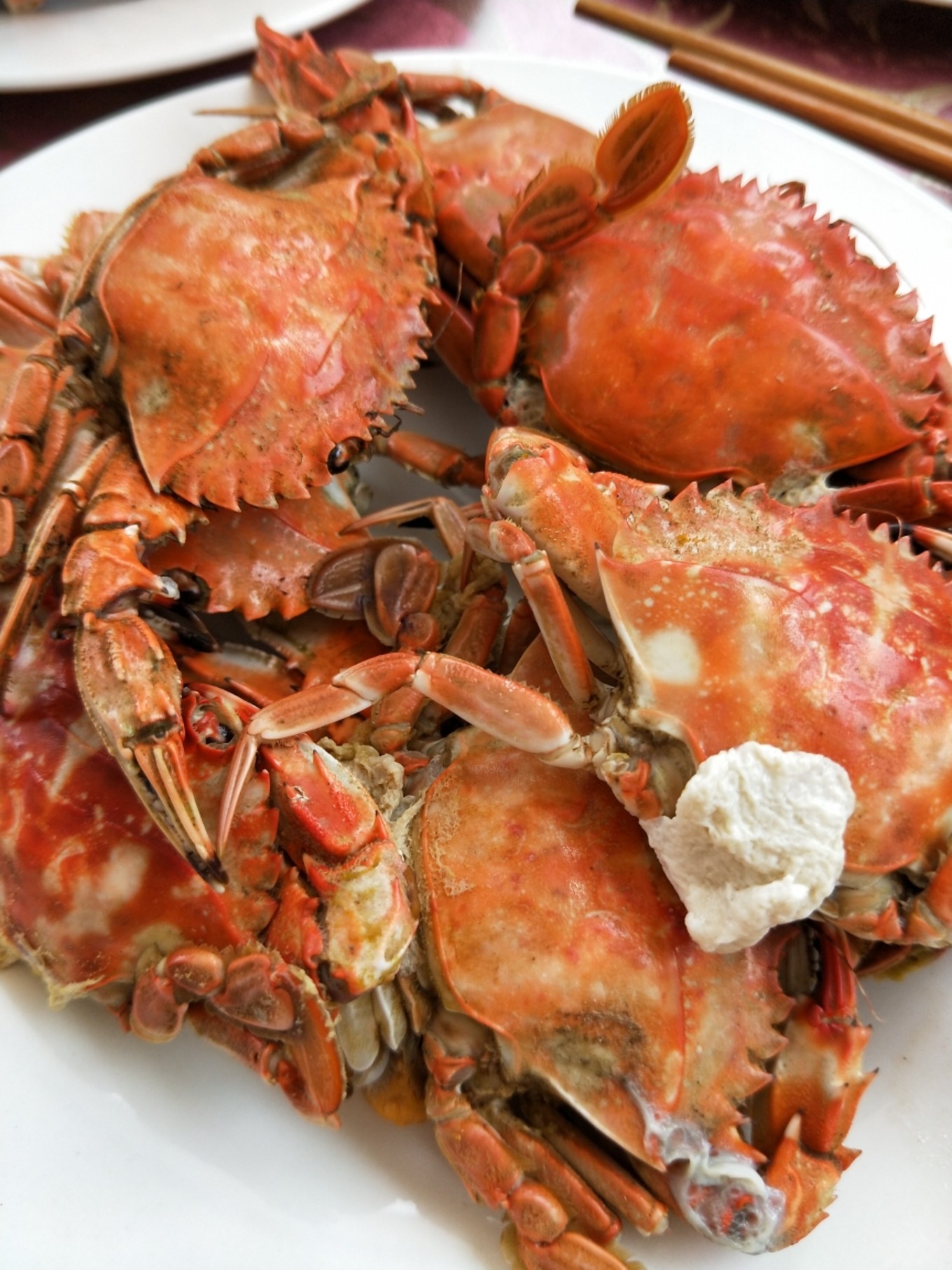 我們安頓好行李后,老板就喊我們上二樓吃飯!當(dāng)然,迫不及待就上去了…其實(shí),我們四個(gè)人對(duì)吃海鮮都不是特別感興趣也不在行,所以,也不會(huì)挑剔海鮮的品類,所以覺得只要味道好,能吃飽就可以了。