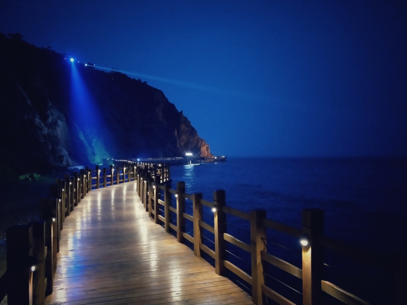 Day2 晚上 木棧橋林海的話,主要是為了看海上的木棧橋,有一段是玻璃的,可以直接看到腳下的海浪拍打巖石!還是會(huì)有點(diǎn)擔(dān)心玻璃的質(zhì)量,哈哈~晚上的話,大概七八點(diǎn),木棧橋會(huì)亮燈,還是蠻好看的!