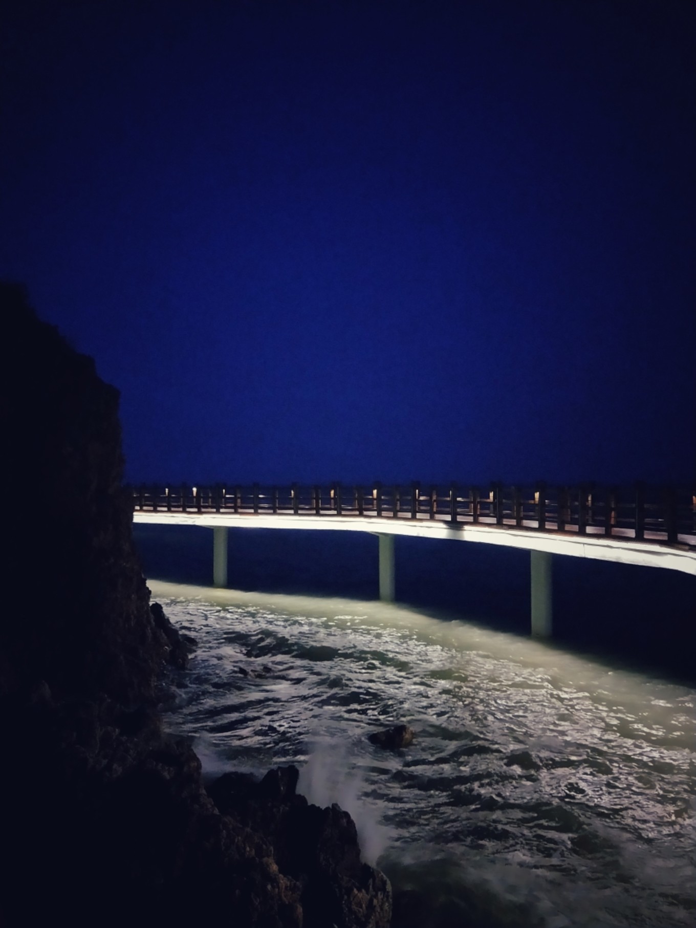 夜幕降臨,海浪呼嘯著不斷拍打橋墩,嗯…還是會(huì)有那么一點(diǎn)冷嗖嗖…