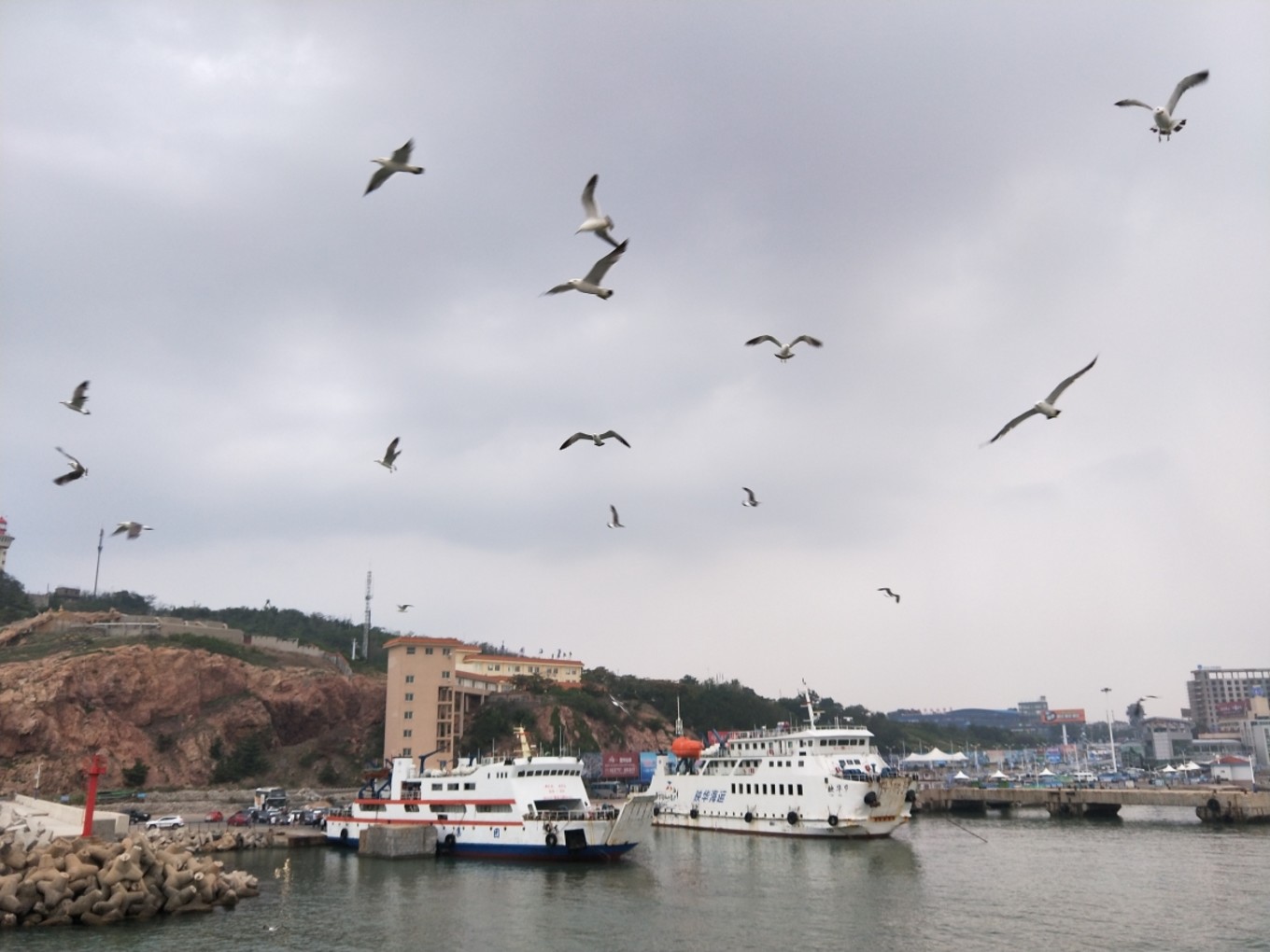 我們需要橫跨山東省,到達(dá)蓬萊港碼頭,然后坐輪渡登長(zhǎng)島。蓬萊港毗鄰離蓬萊閣和蓬萊海洋世界。