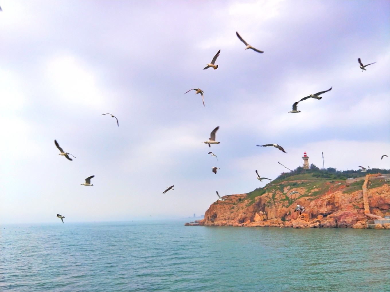 在去往長(zhǎng)島的輪渡上,乘務(wù)人員會(huì)不停的吹哨子,引來(lái)大量海鷗,然后兜售火腿腸讓乘客來(lái)喂食海鷗,5塊錢6根。這也是為什么之后我們沒有選擇出海去萬(wàn)鳥島的原因…來(lái)的時(shí)候看一遍海鷗,走的時(shí)候還要再看一遍,所以我們覺得真心沒必要再花錢專門出海去看海鷗了,會(huì)看吐吧,哈哈!
