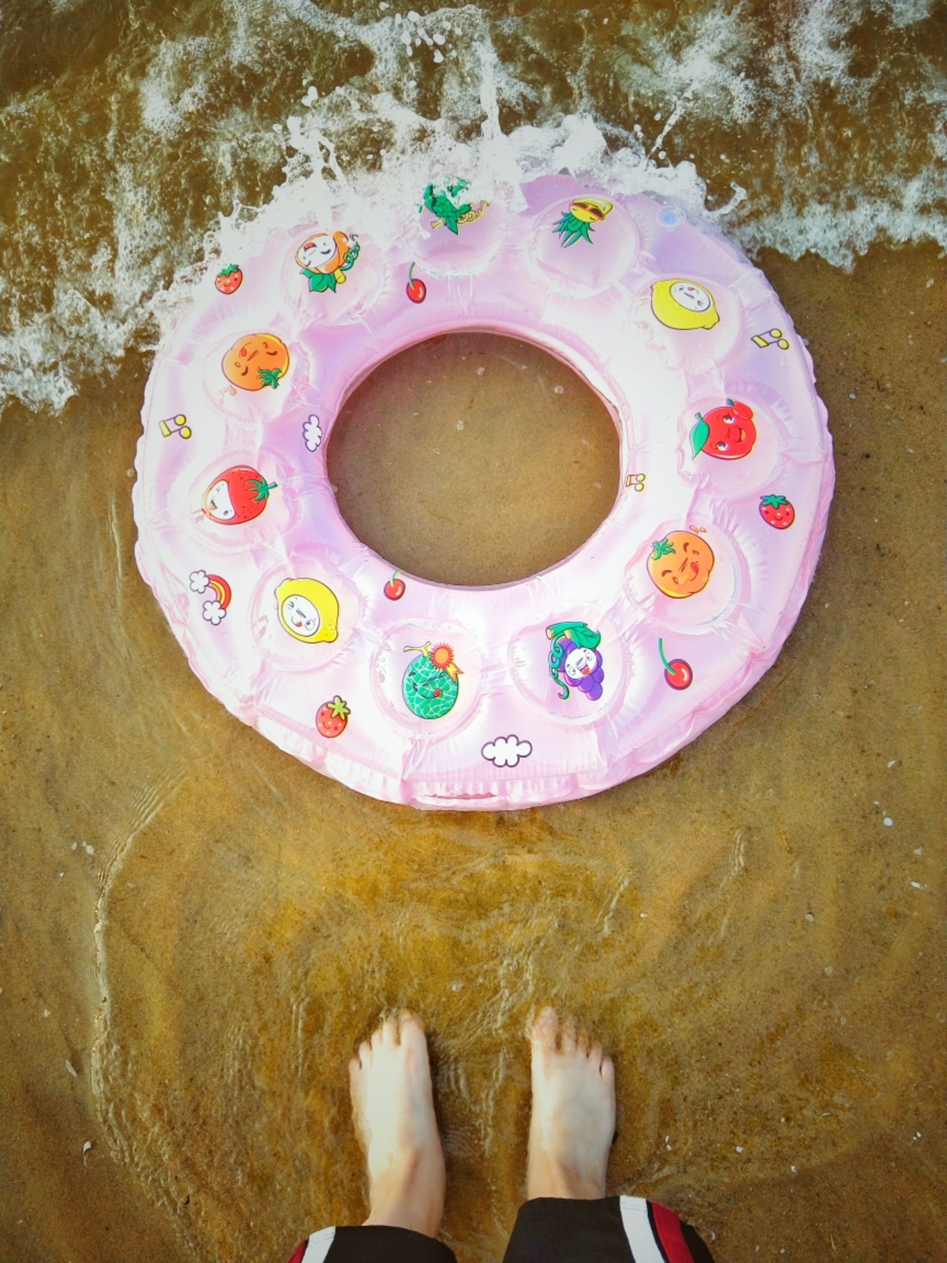一個(gè)跑了氣的美美噠游泳圈,被無(wú)情的遺棄在海里,時(shí)不時(shí)的被海浪拍打到岸邊,和它合張影吧,安撫一下它孤單的情緒~