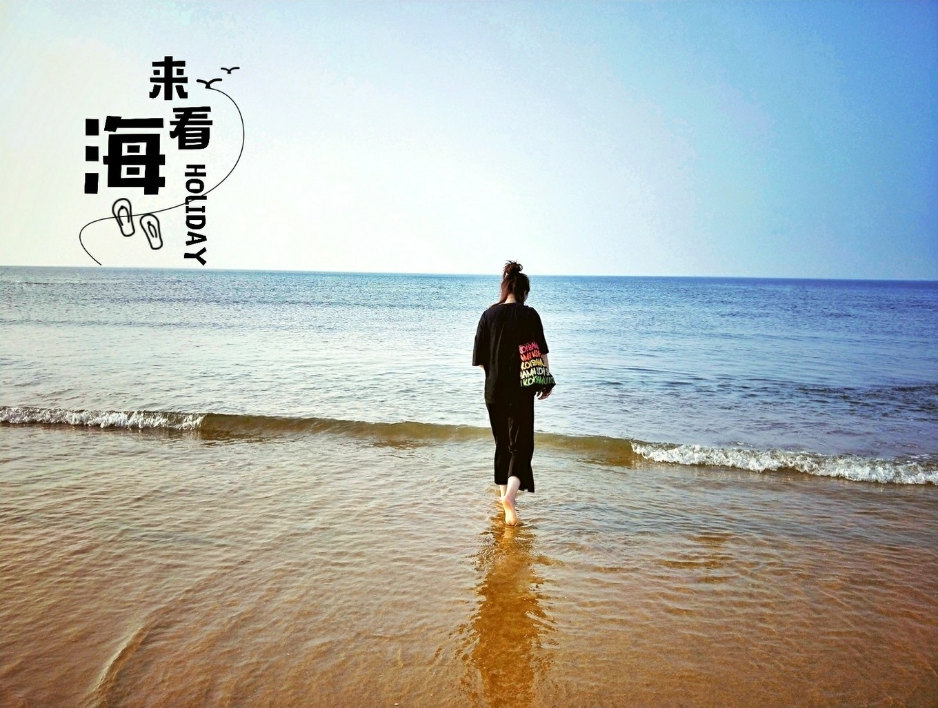 到了金沙灘,沒有了硌腳的小石頭,細(xì)軟的金色沙子腳感還是挺好的。人不是特別多,而且海水不涼,是完全可以承受的溫度。好想跳進(jìn)去游一圈…這里視野很開闊,長(zhǎng)度兩公里的海灘基本可以看到頭尾…