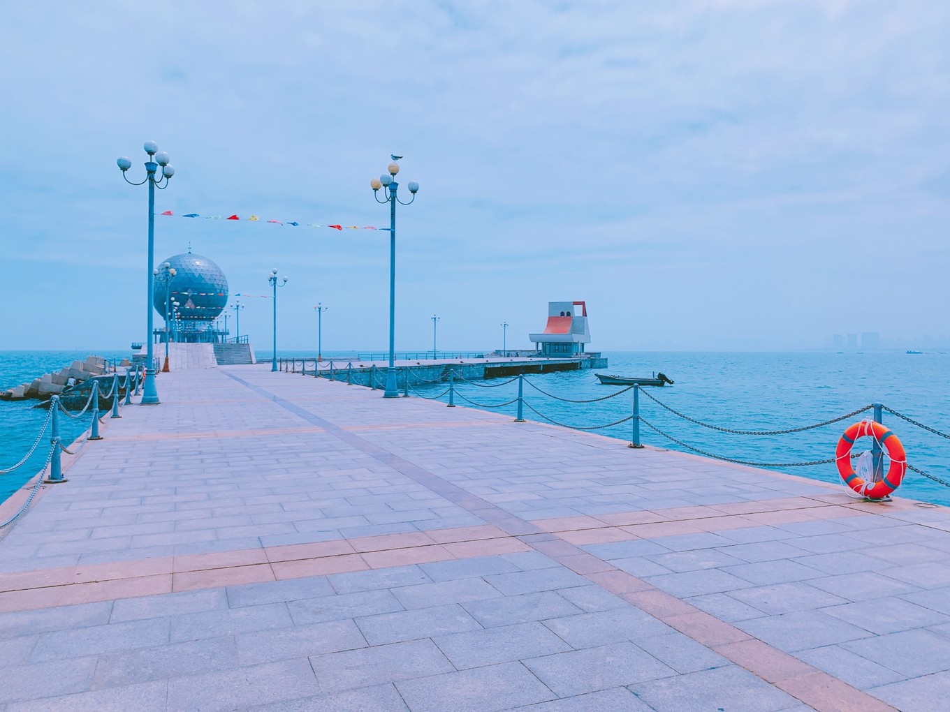 整個(gè)上午的時(shí)間就耗費(fèi)在這座橋上了,我也并沒有覺得多無聊,因?yàn)槲疫€在那個(gè)“大球球”上面坐著吹了將近一小時(shí)的海風(fēng),跟零星的游客和一個(gè)清潔大叔嘮了嗑。對(duì)我來說來海邊最舒服的事情就是聽海浪吹海風(fēng)了,其他的都不是那么重要。