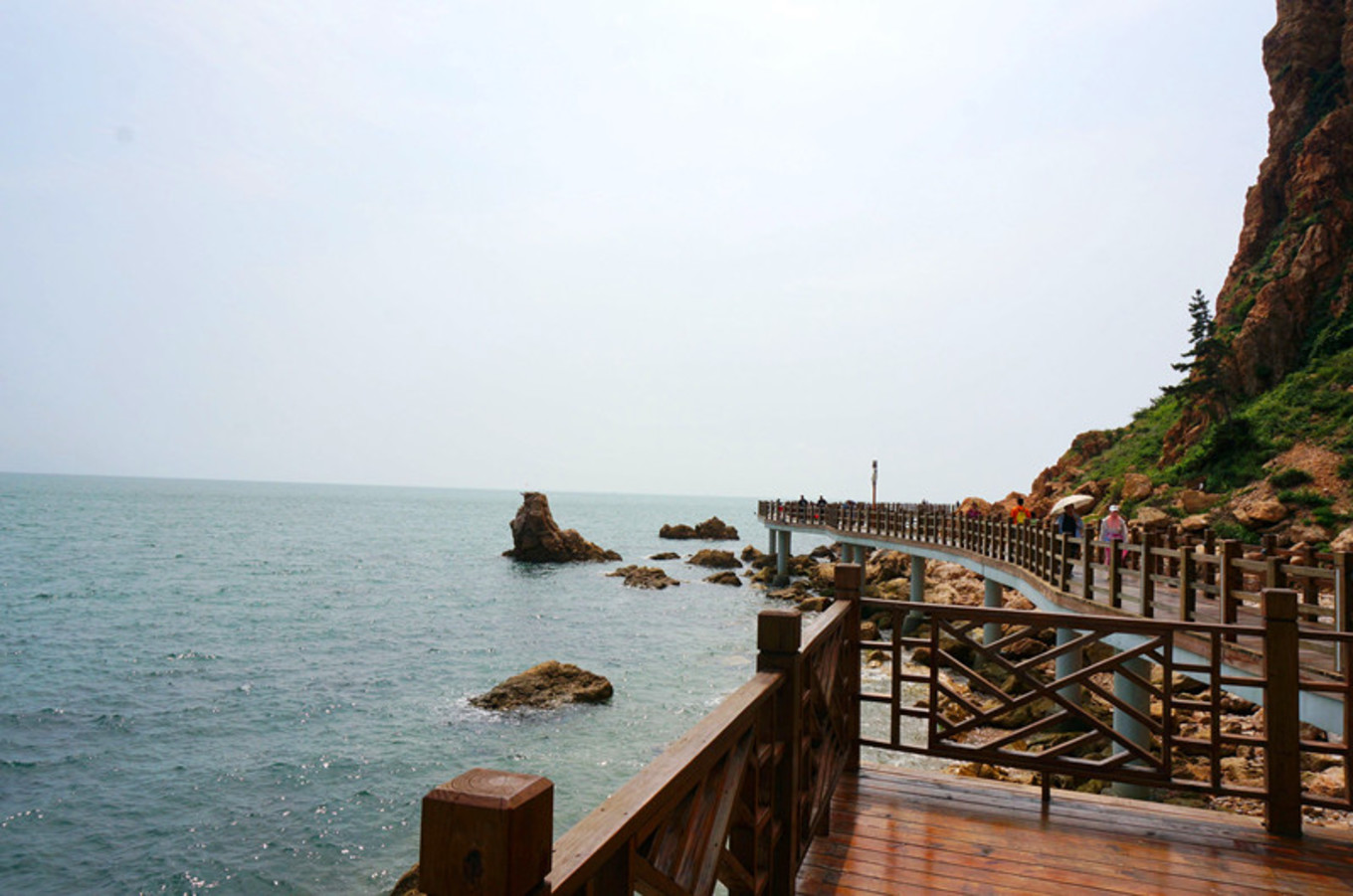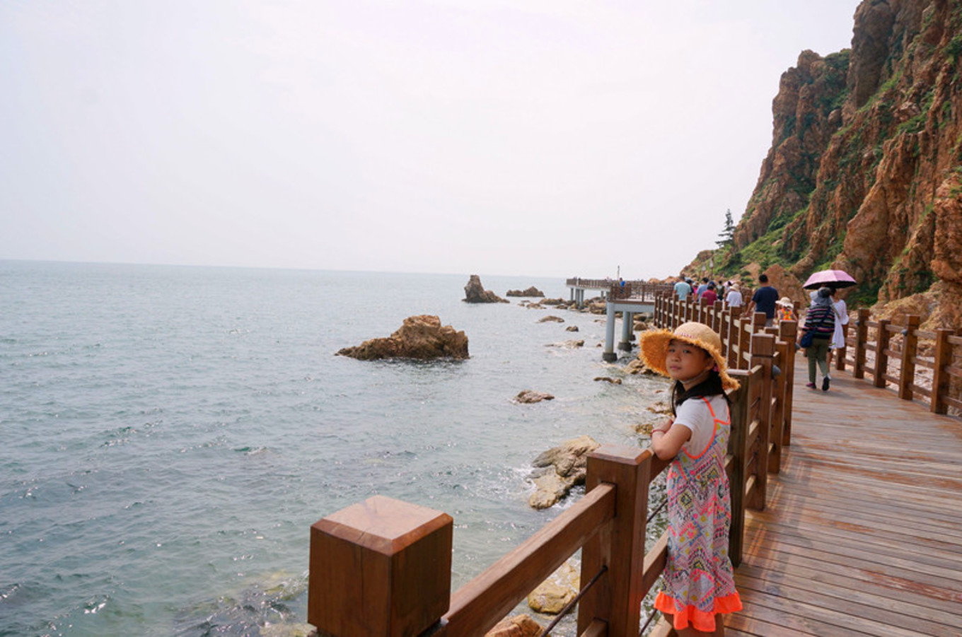 最喜歡的就是海邊的木棧道,一邊臨著陡峭的山,一邊臨著浩瀚的海,腳下還有一段是透明玻璃棧道。沿海漫步,海風(fēng)吹在身上涼涼的。海邊的氣候就是這樣,艷陽高照,但海風(fēng)是涼的,空氣并不干燥。我就是喜歡海,七年前來的時(shí)候,每個(gè)景區(qū)還沒有修建的那么漂亮,那時(shí)的長(zhǎng)島才剛剛為人所知。游人也沒有那么多。