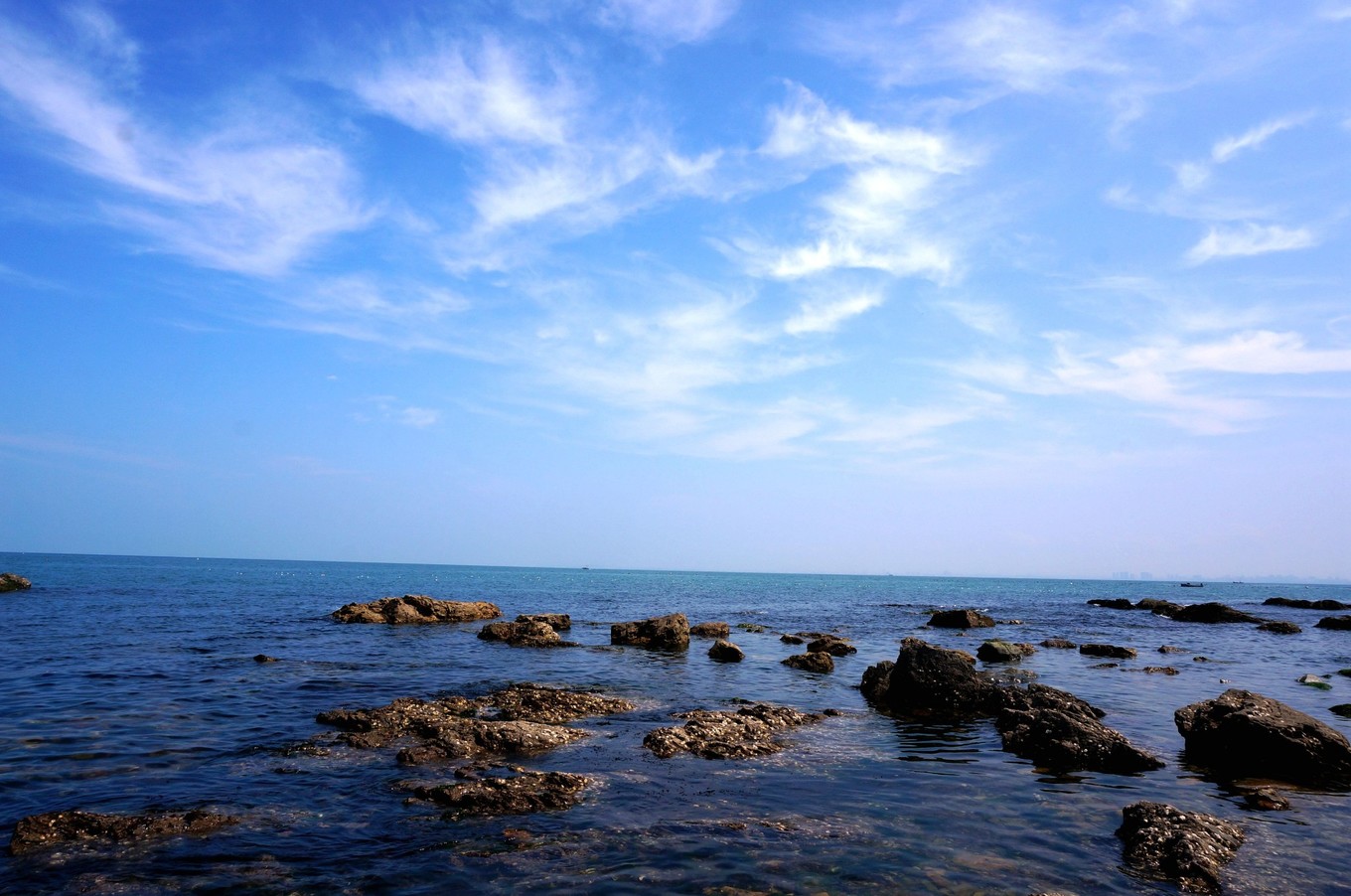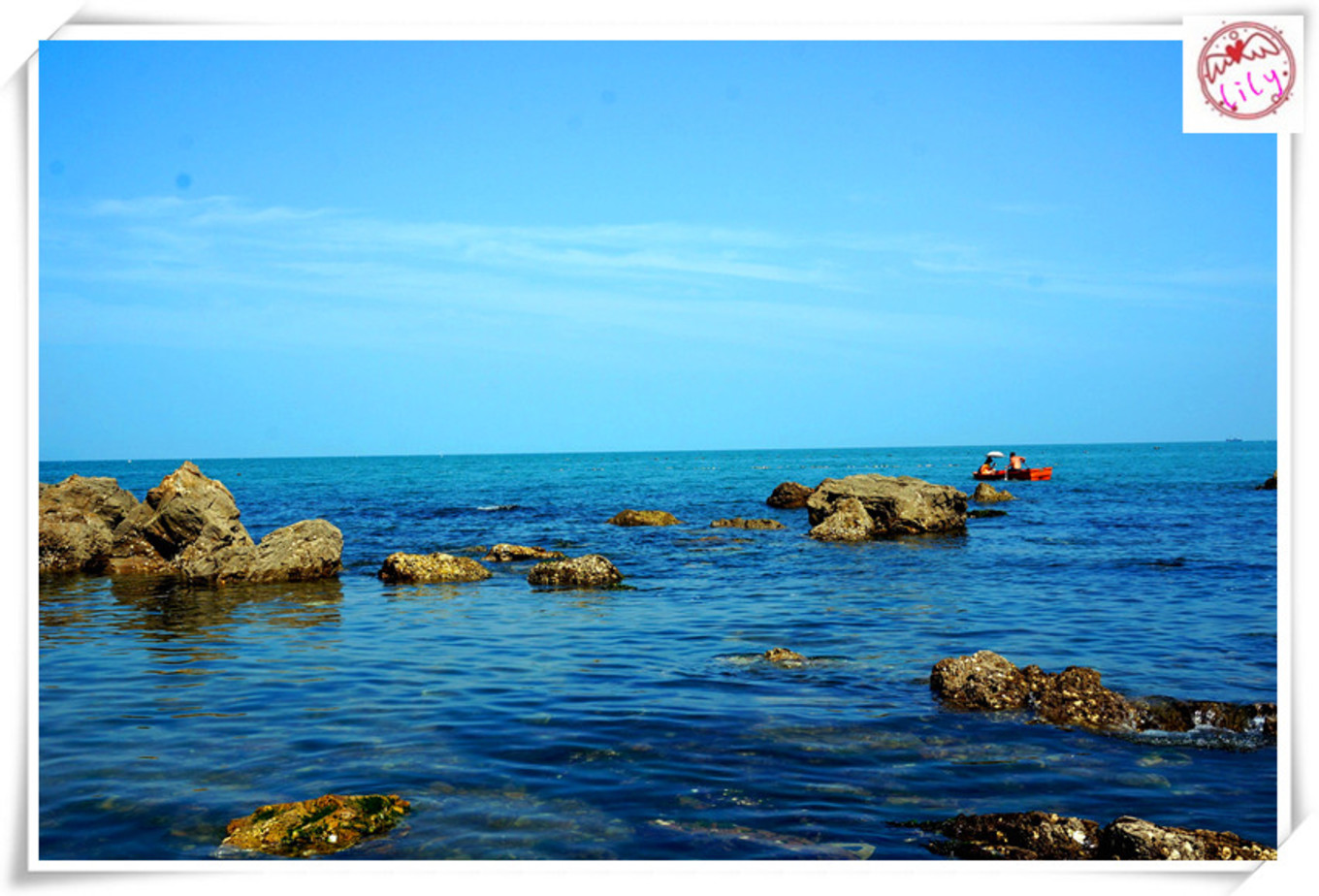 孩子們有了海就是開心的,踩著海水,聽著海濤,撿著貝殼,滿心歡愉。找塊礁石坐下來,望著天藍(lán)藍(lán)海藍(lán)藍(lán),吹著咸咸的海風(fēng),心情猶如遼闊的大海,心中吹起陣陣海風(fēng)。