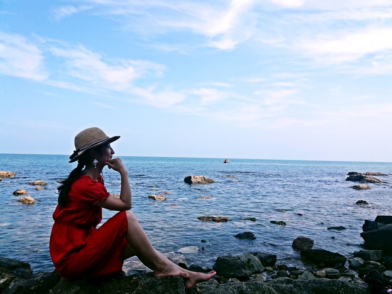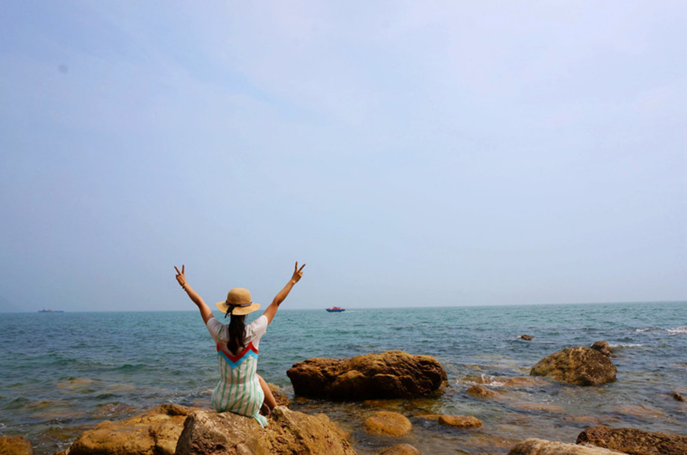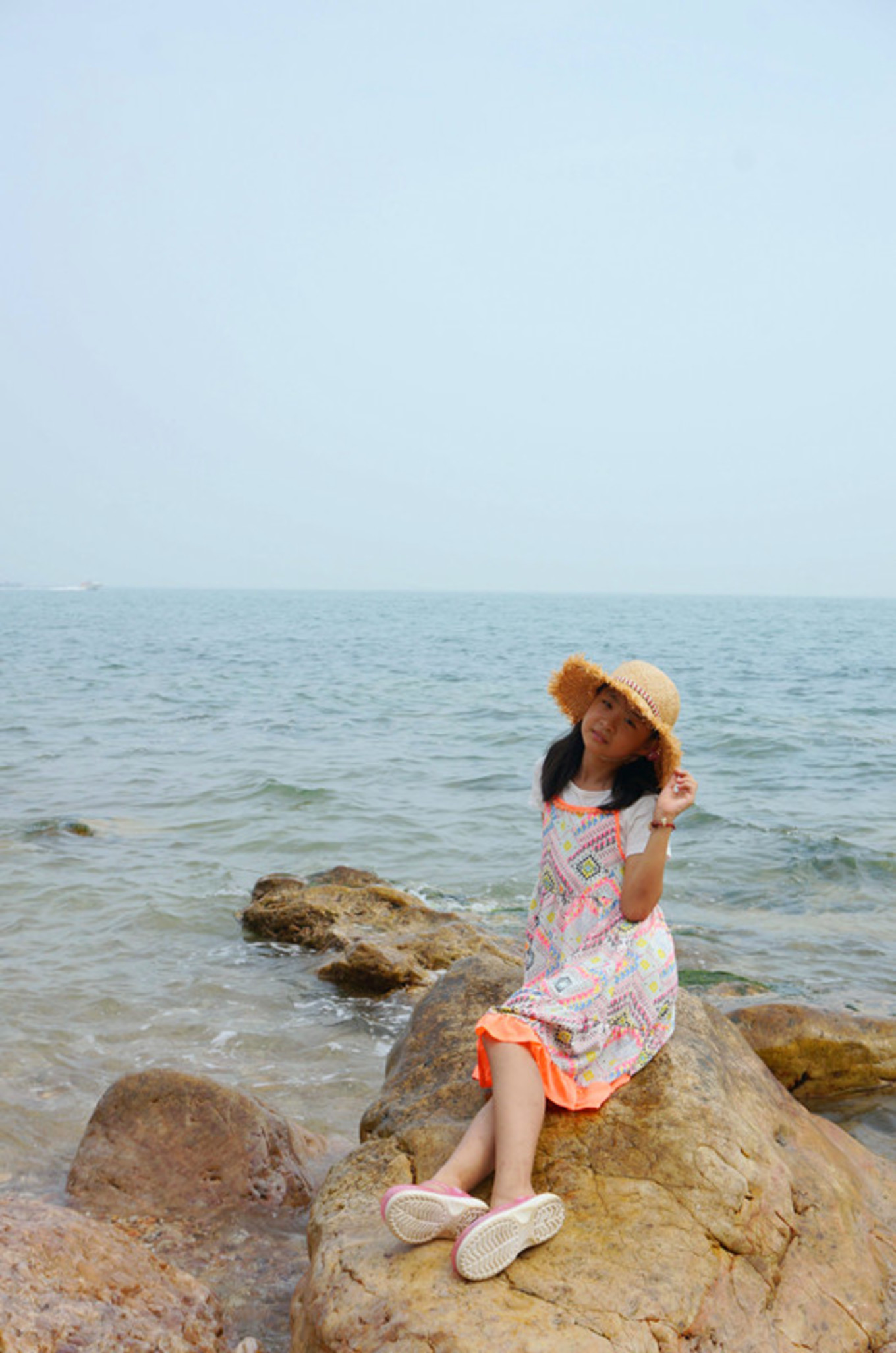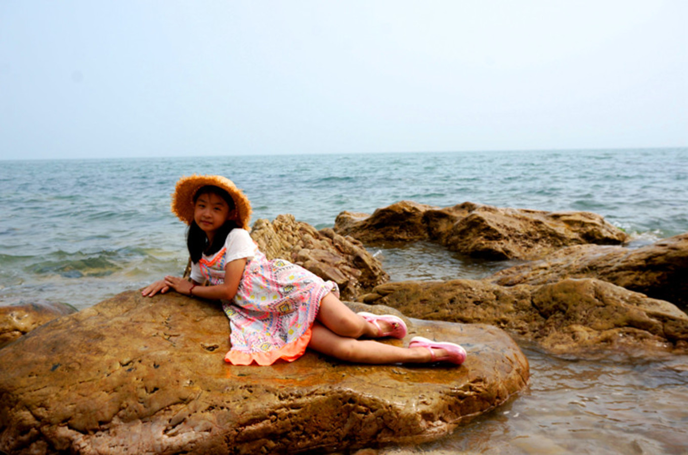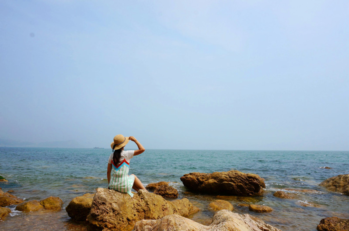 坐在礁石上,找到了小美人魚的感覺。在浩瀚的大海中,做一只自由自在游來游去的快樂小魚也是一件幸福的事情。