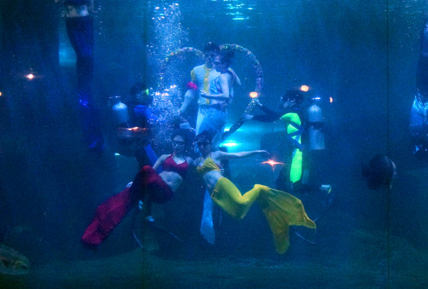 海洋館里的美人魚表演。