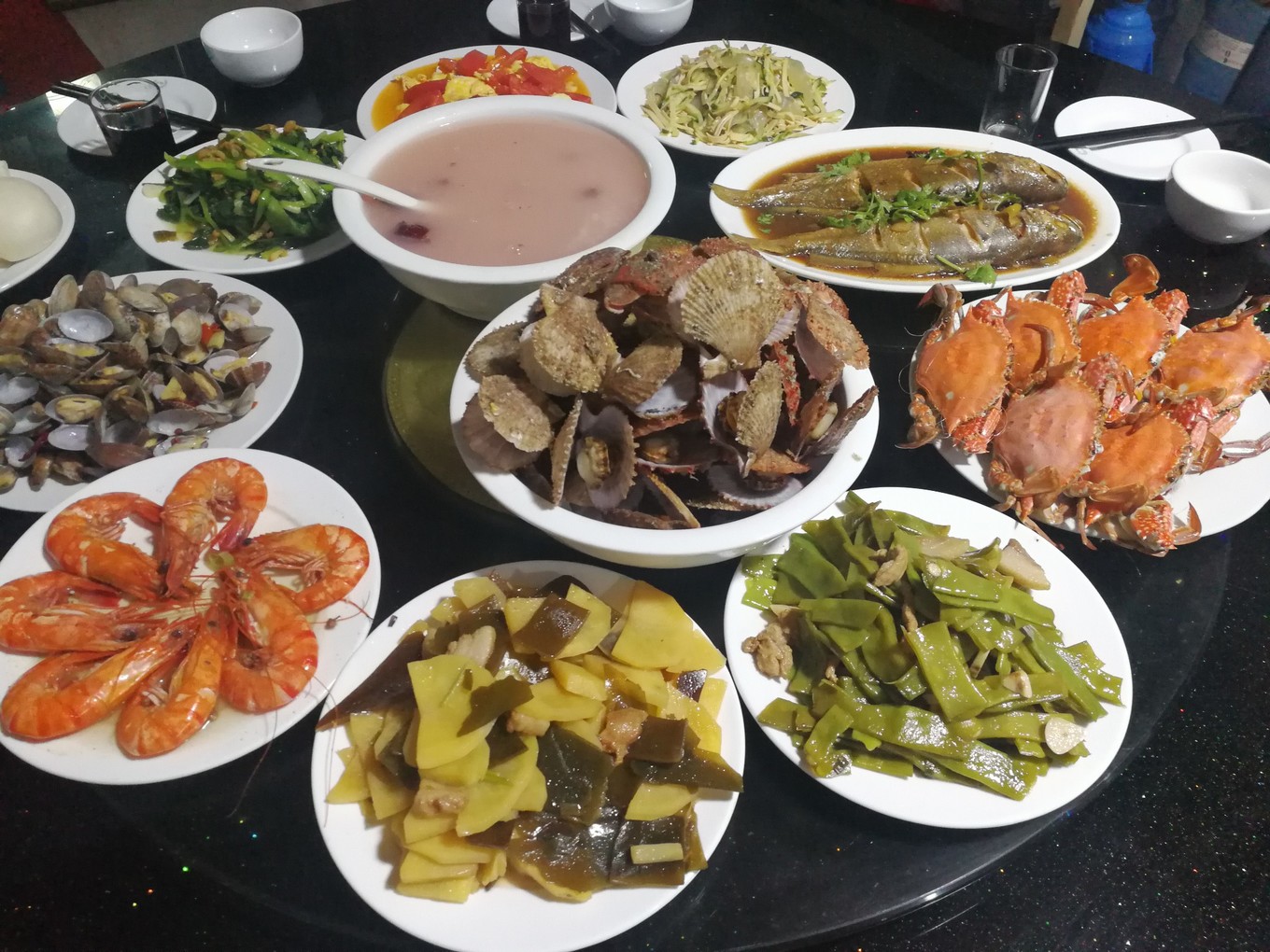 長(zhǎng)島壹號(hào)漁家樂一路輾轉(zhuǎn)到達(dá)長(zhǎng)島已是傍晚,大姐提前為我們準(zhǔn)備的一桌菜,因?yàn)槲沂抢吓笥?,特意給我加了兩個(gè)菜。